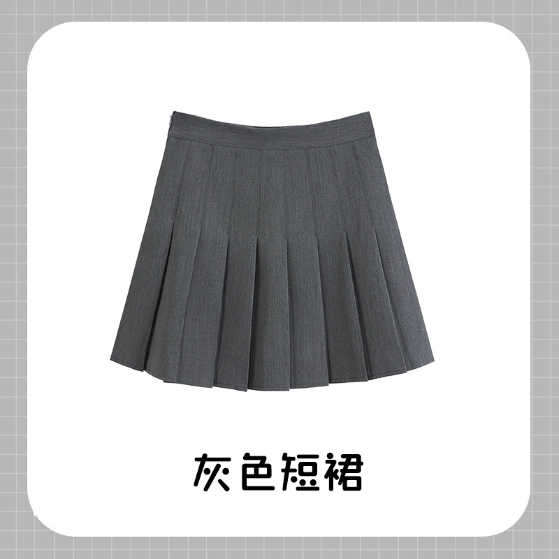 • 511 세트 (반팔 셔츠 + 회색 주름 치마 + 배지) + W24 블랙