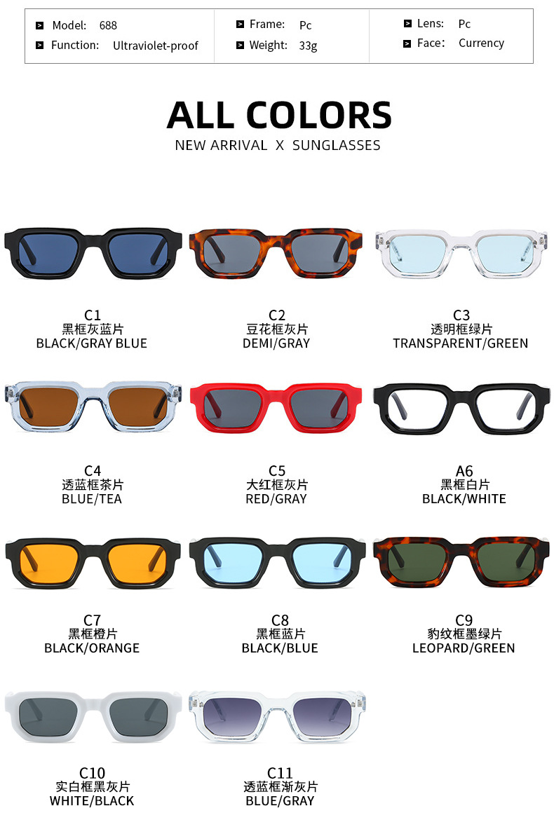 크로스보더 사각 선글라스 유럽 및 미국 레트로 스타일 두꺼운 작은 프레임 패션 선글라스 여성용