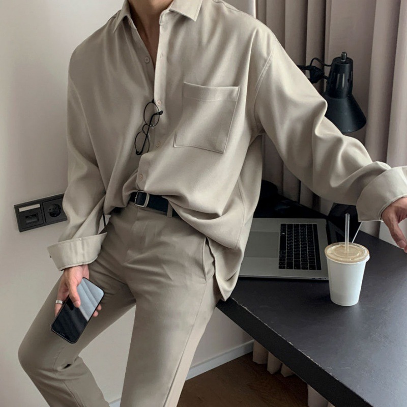 MYQ 올드 머니 스타일 캐주얼 긴팔 셔츠 남성용 가을 한국 스타일 루즈핏 고급 셔츠 다림질 필요 없는 셔츠스토어 가기