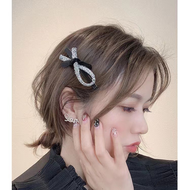 프렌치 레트로 반짝이는 다이아몬드 헤어핀 2024년 신상 여자 한국식 앞머리 클립 헤어 액세서리 우아한 사이드 클립스토어 가기