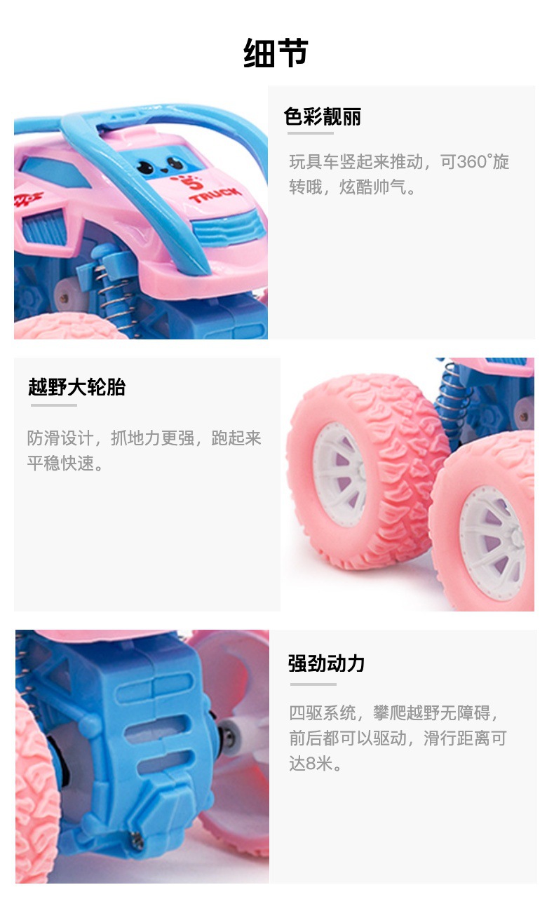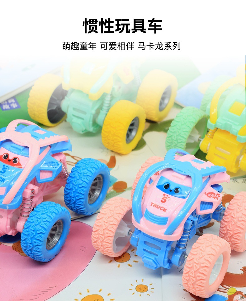 마카롱 색상의 관성식 4륜 구동 자동차, 핑크색 소형 자동차, 롤링 장난감 자동차, 여자아이, 남자아이, 아기들을 위한 내구성 있는 장난감 자동차