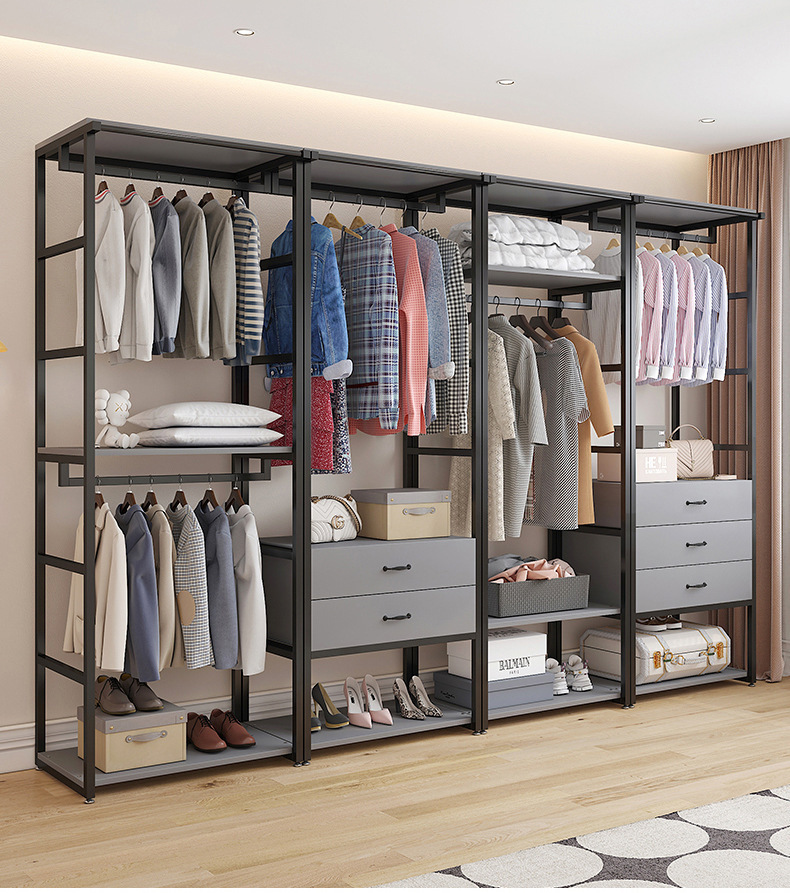 가벼운 고급스러운 워크인 옷장 옷걸이 홈 침실 서랍 보관 조합 바닥에서 천장까지 이어지는 더블 레이어 옷걸이 옷장스토어 가기