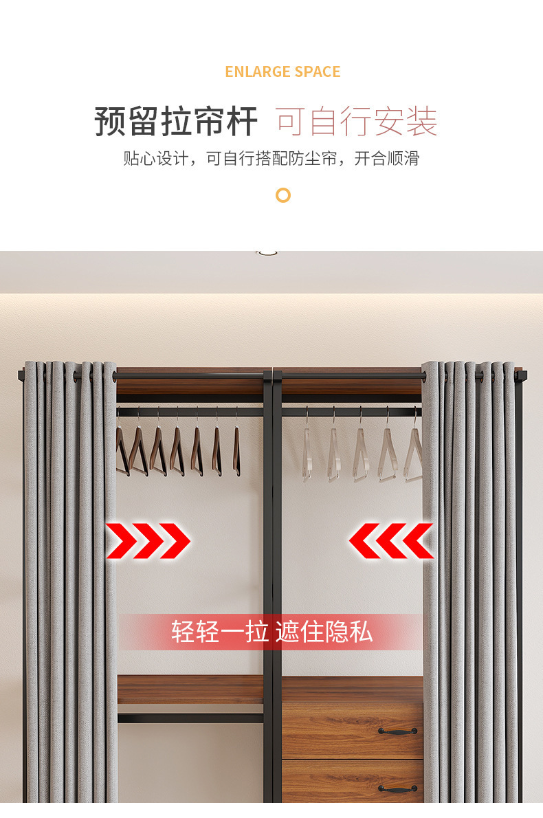 默认主图颜色黑色架子金橡木板,如需其它颜色请留言或联系客服备注,所有架子宽度上55厘米预留帘子杆 ,下50厘米。加厚钢管后面加H杆升级后更结实稳固。如需要定制联系客服,定制款不予退换货。