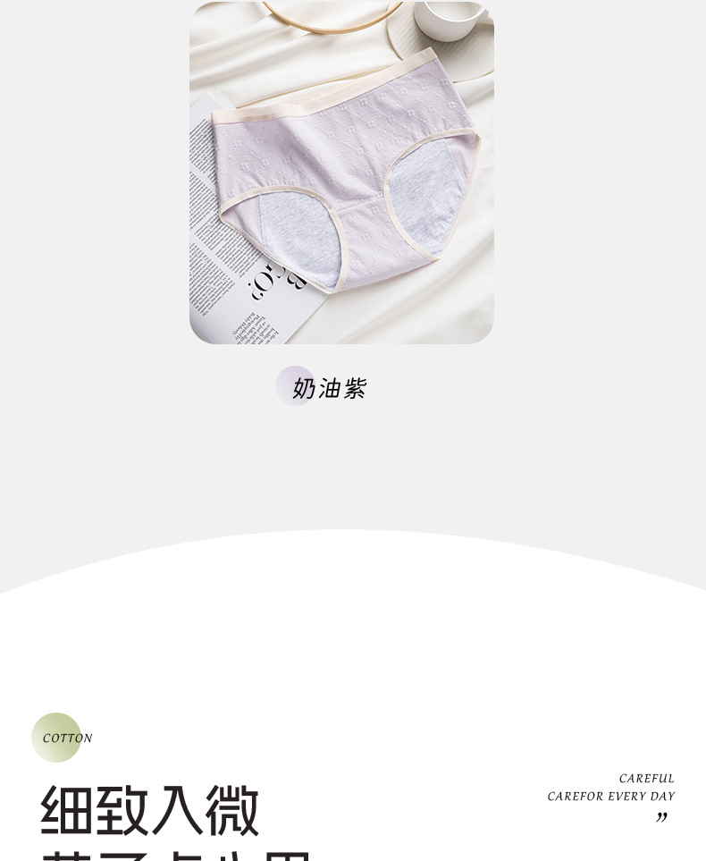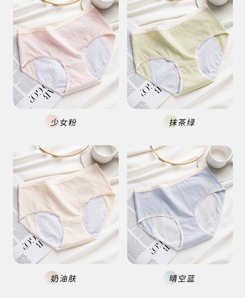새로운 여자 면화 생리 기간 속옷 증가 두꺼운 버클 안티 사이드 누출 자카드 모란디 컬러 속옷 촬영 배치