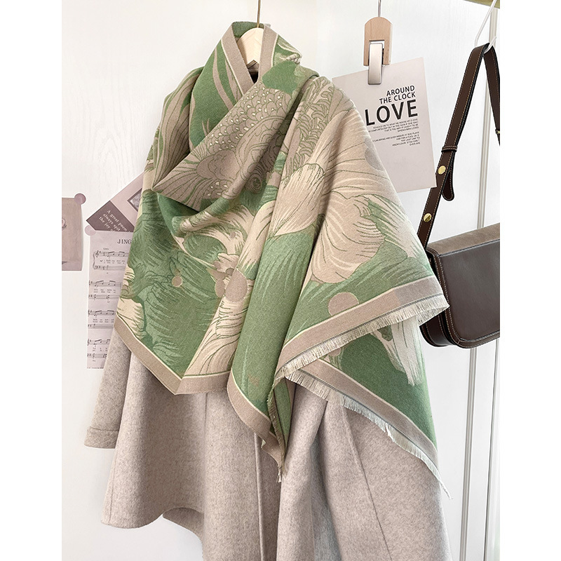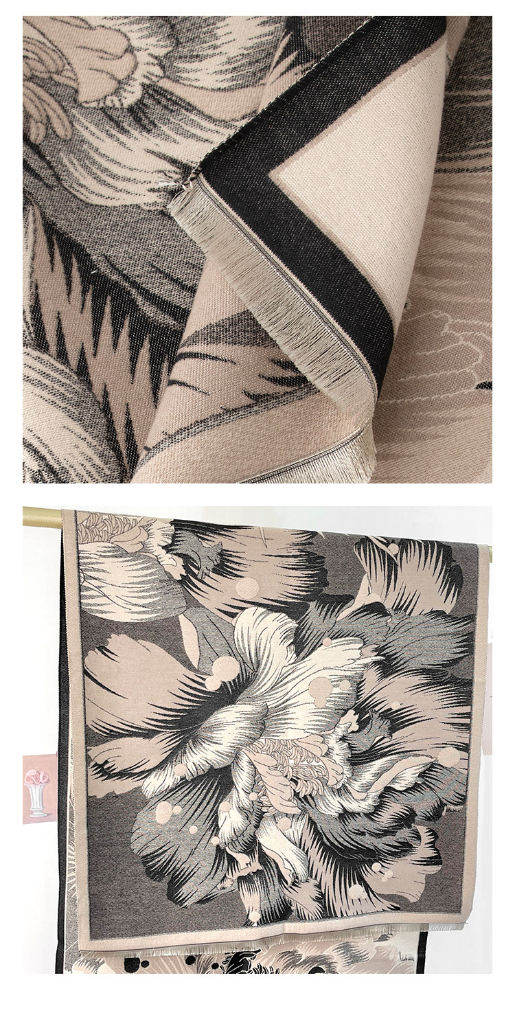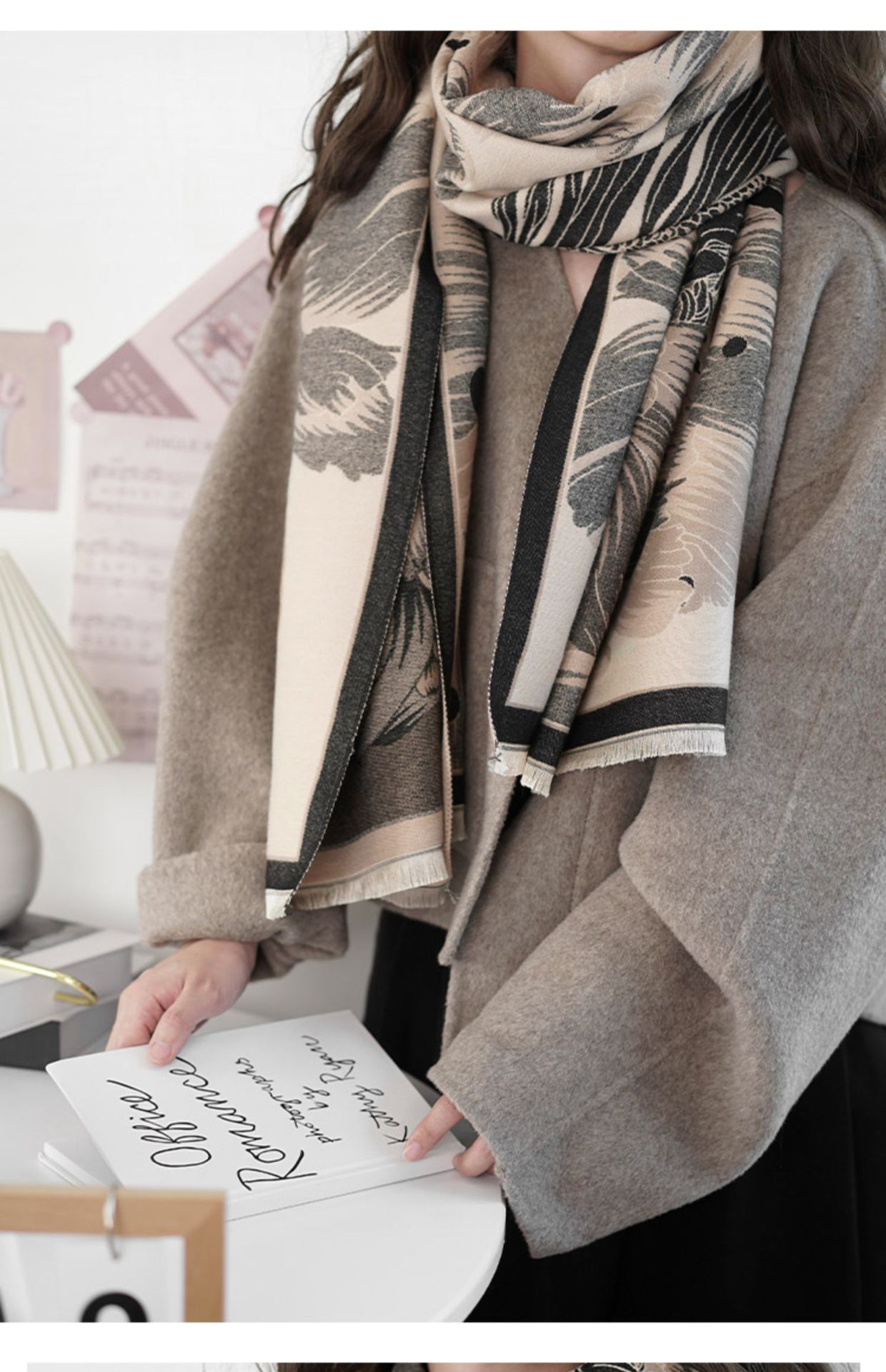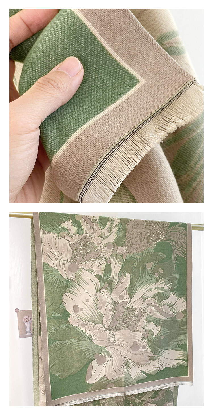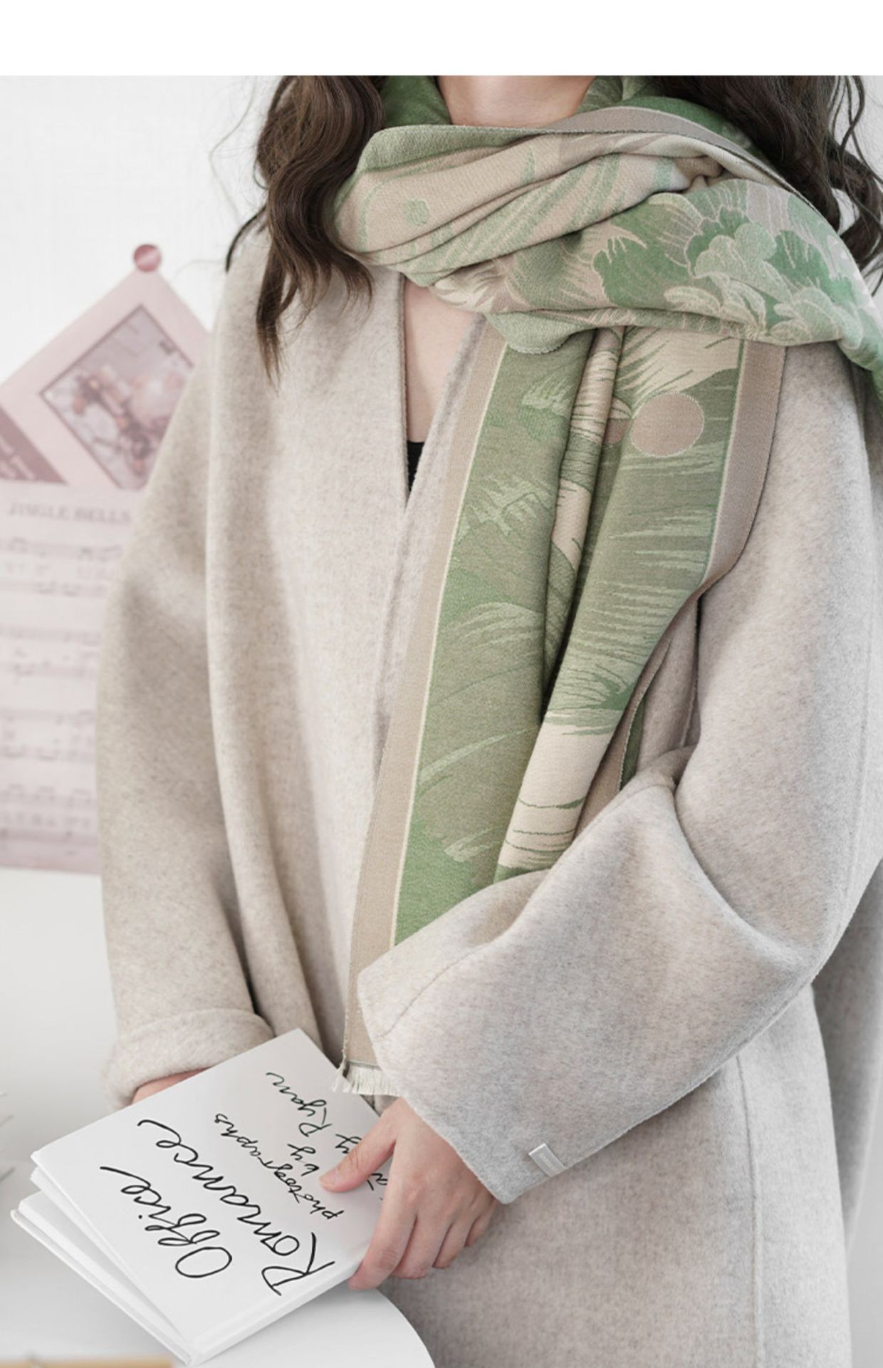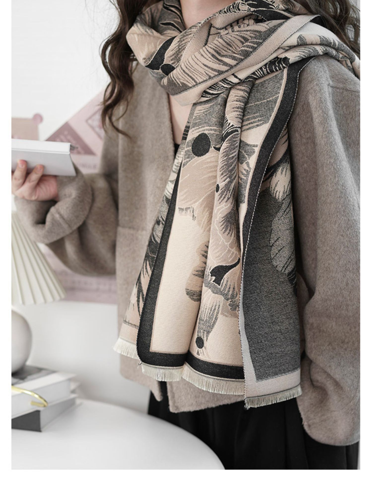 丹青海棠!双面加厚仿羊绒围巾女冬季韩版长款百搭保暖两用披肩