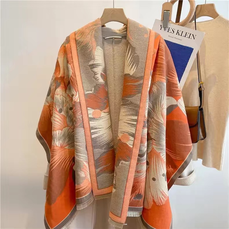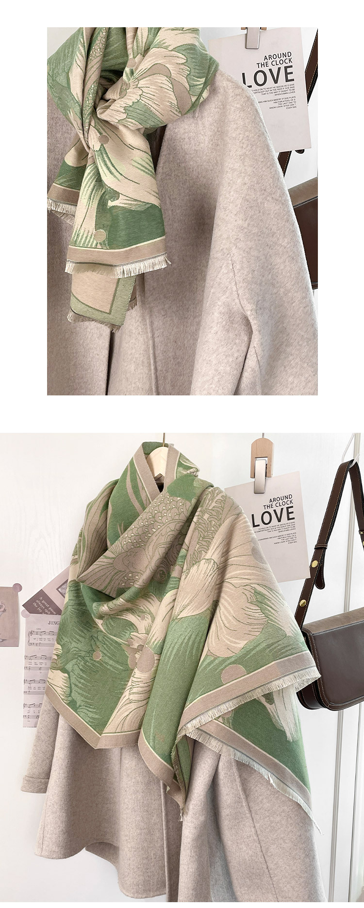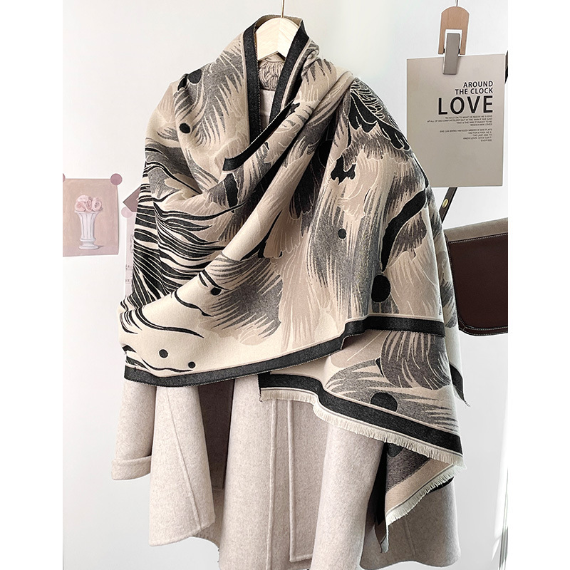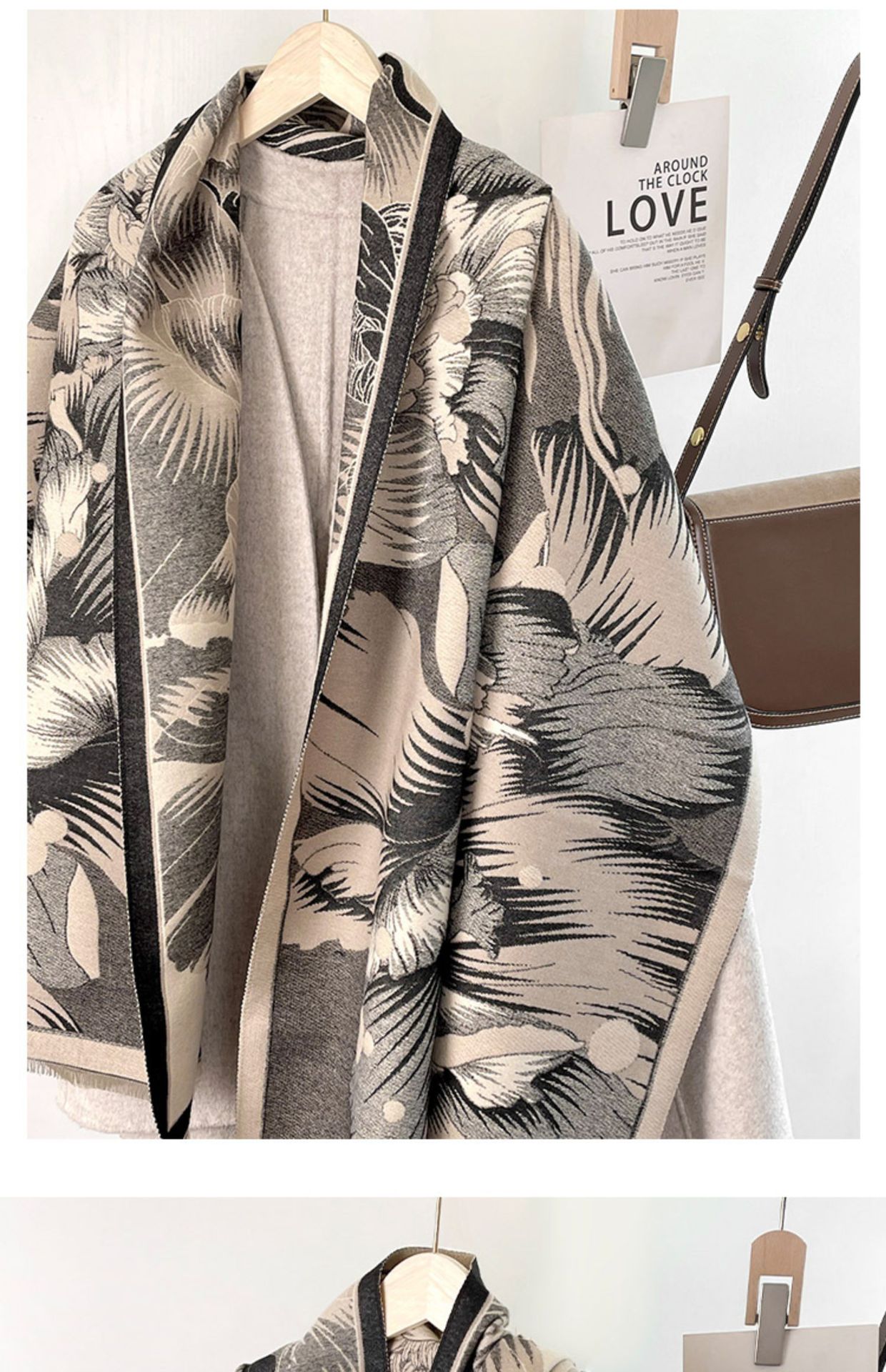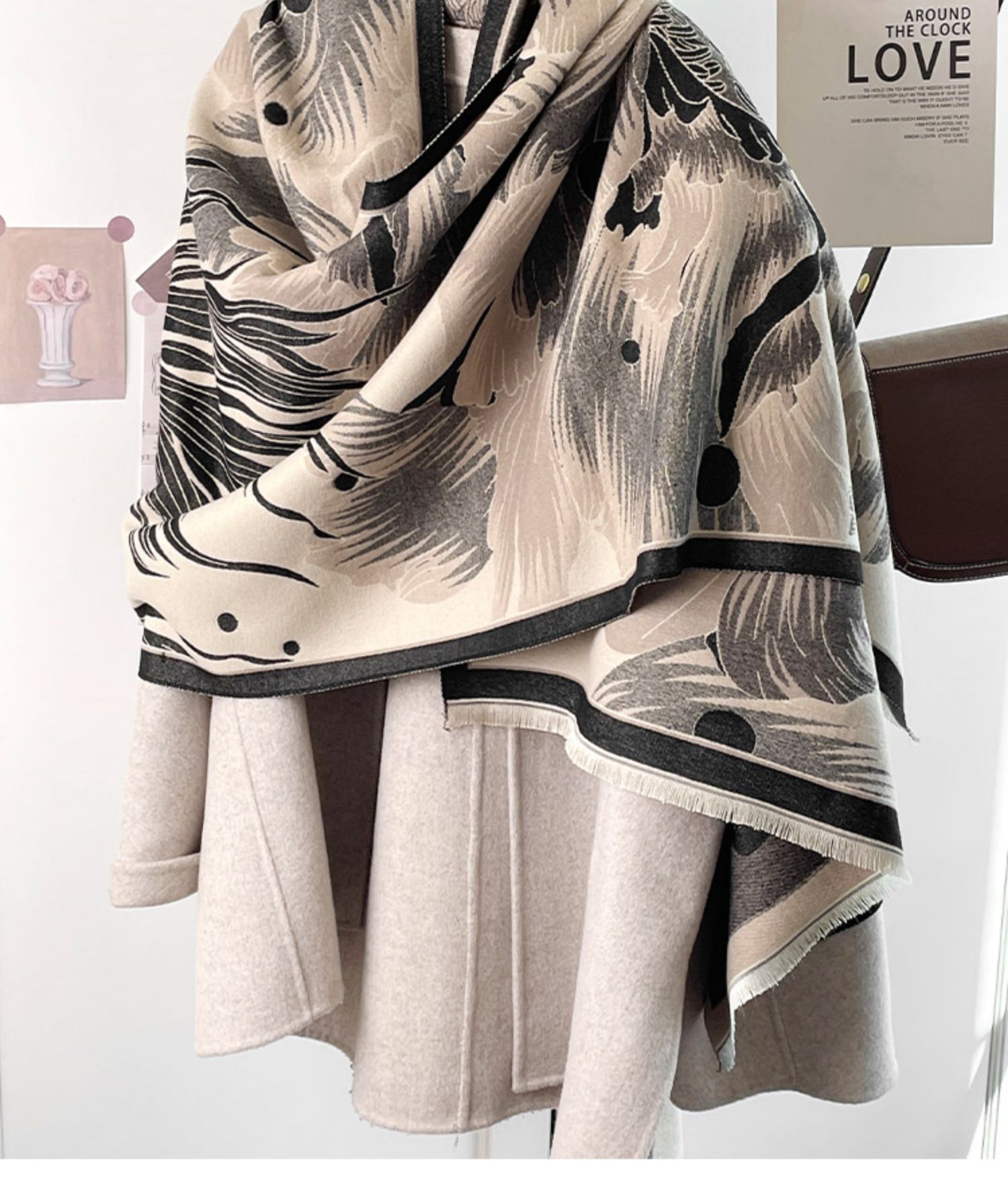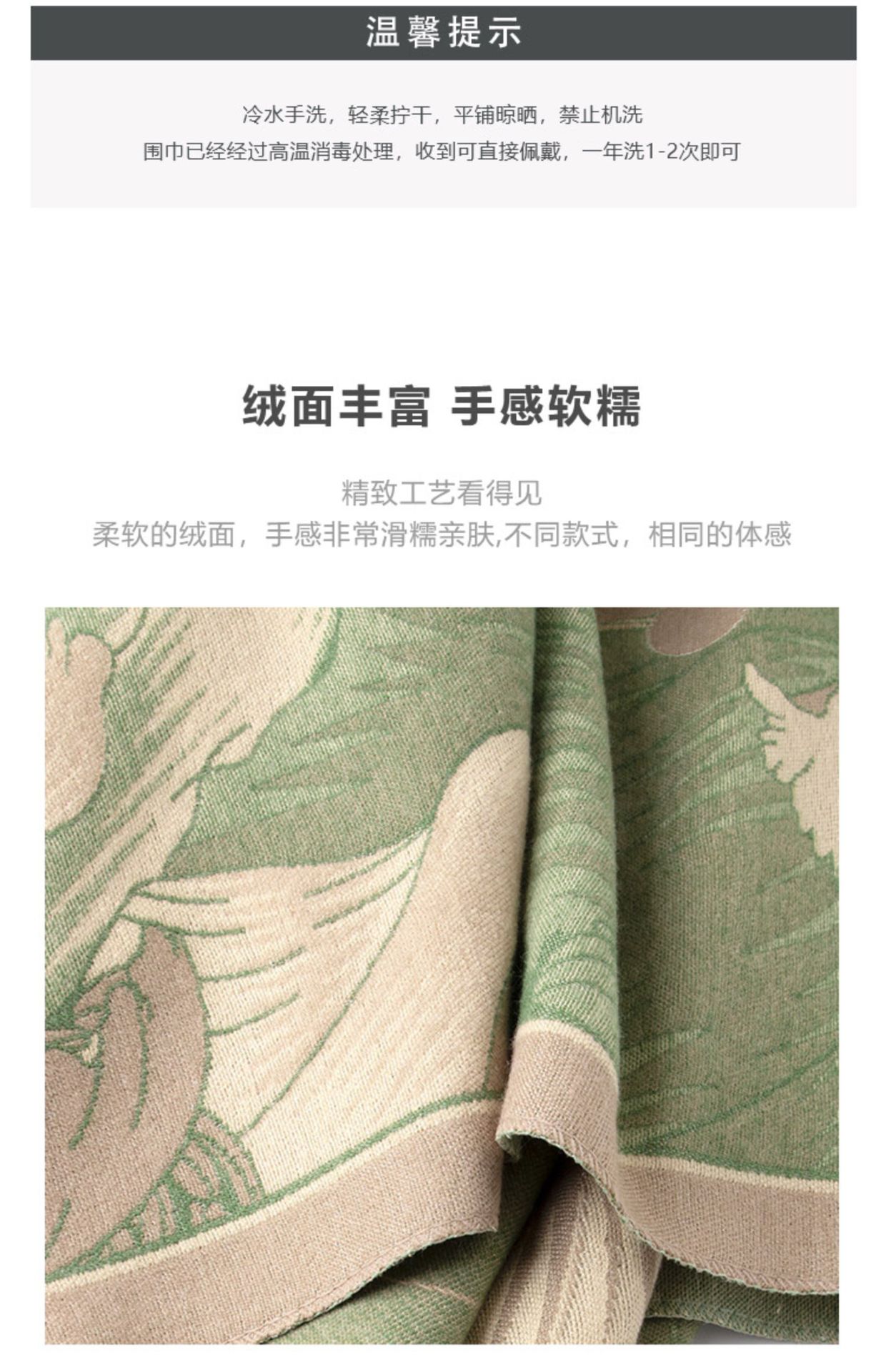 丹青海棠!双面加厚仿羊绒围巾女冬季韩版长款百搭保暖两用披肩