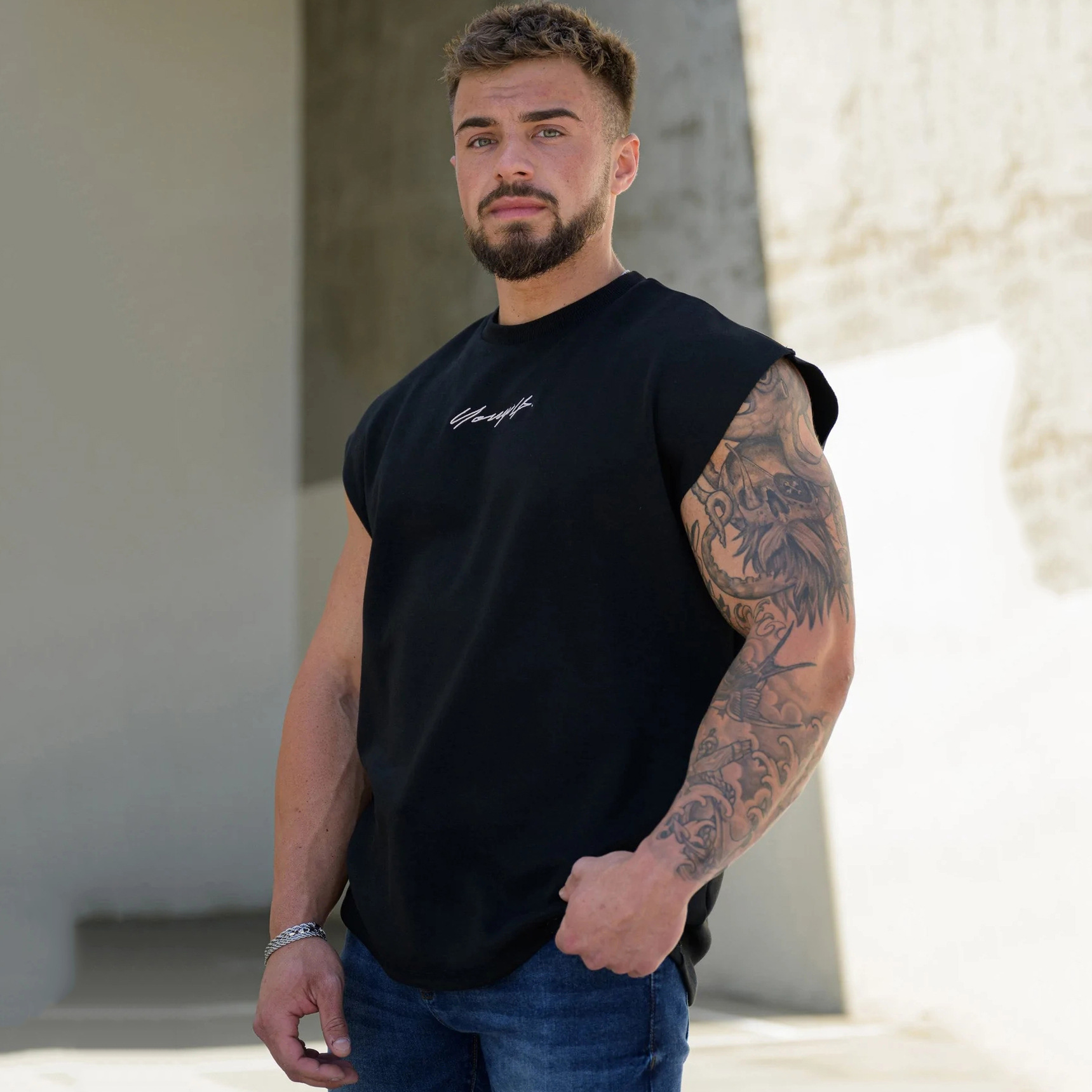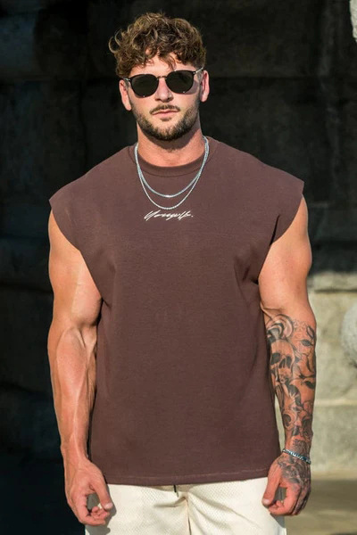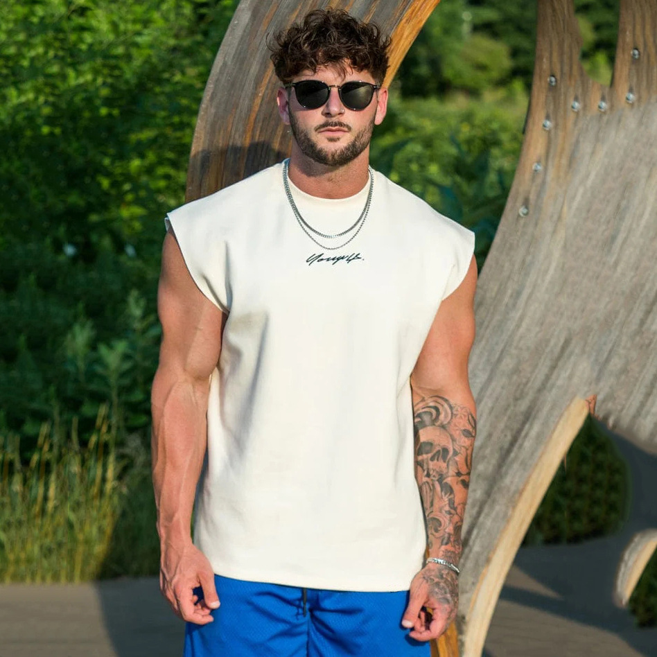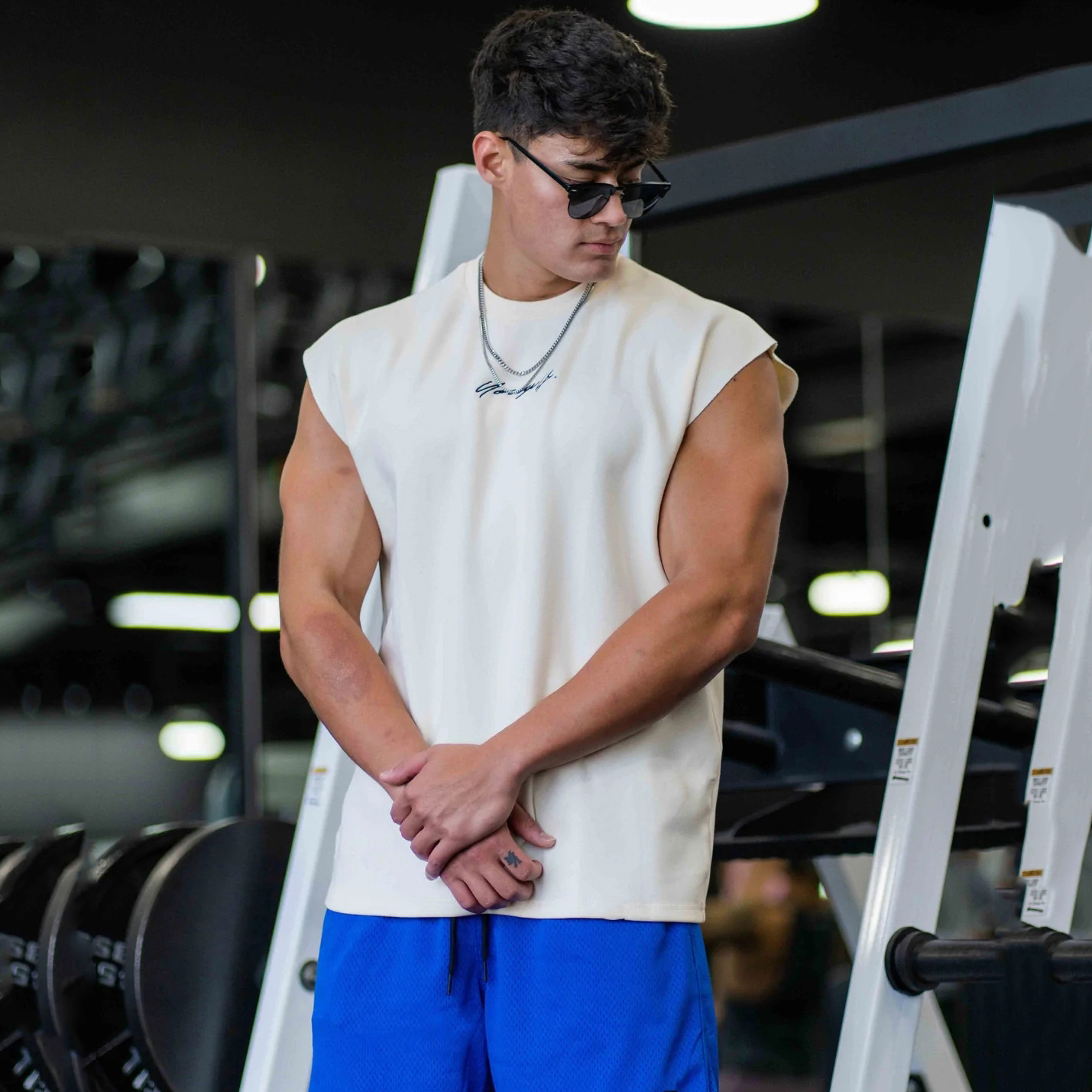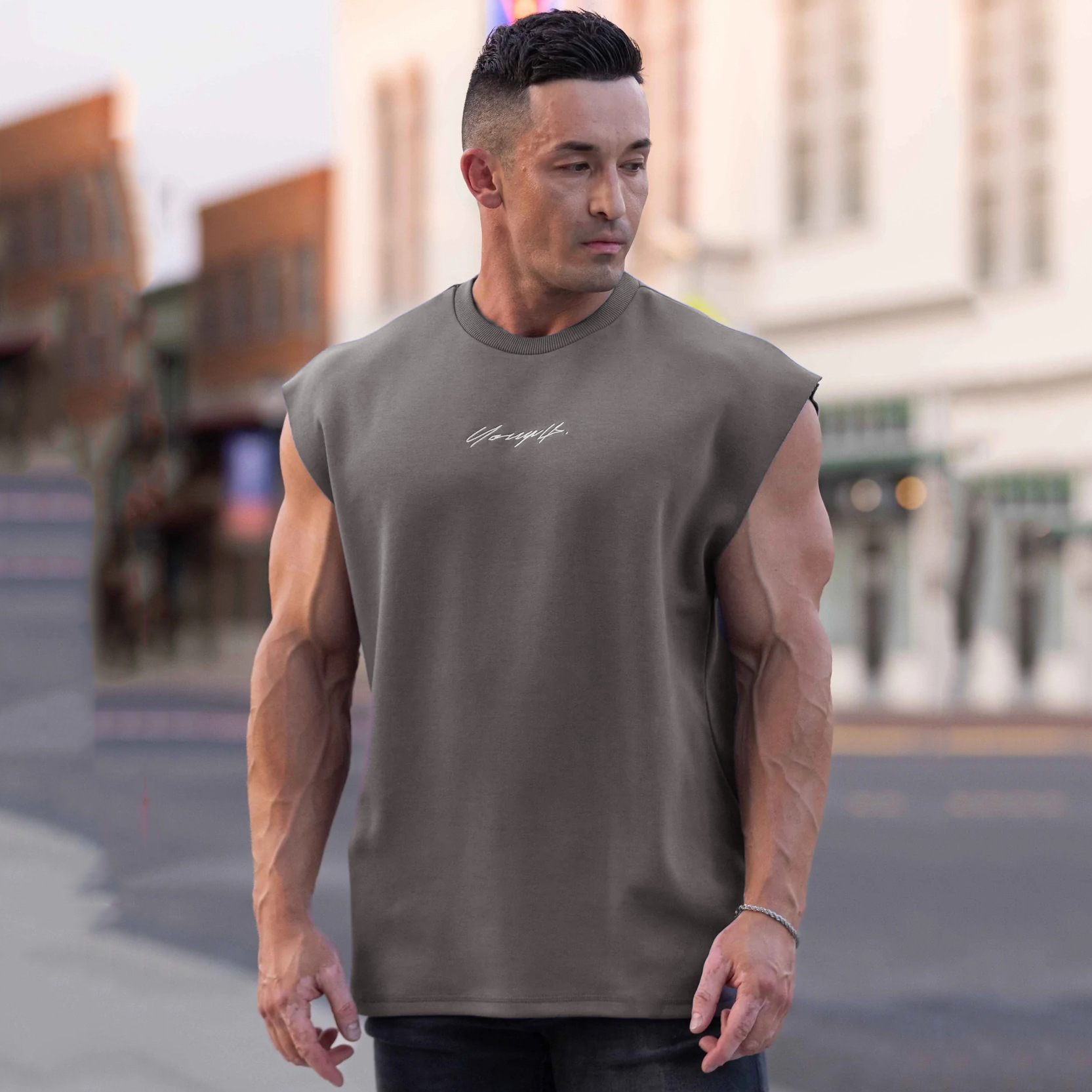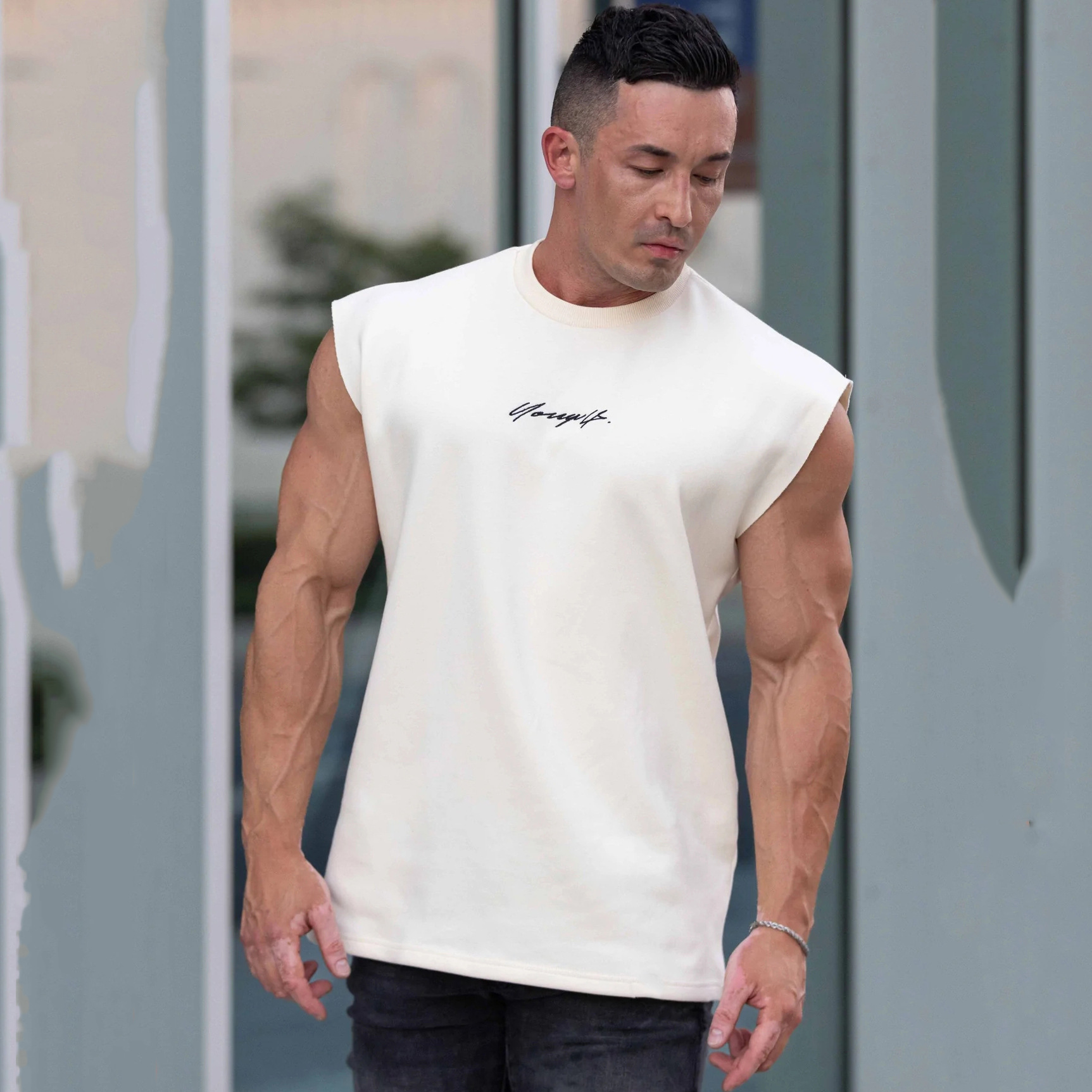 근육 여름 새로운 형제 남성 스포츠 레저 체육관 운동면 느슨한 두꺼운 닳은 조끼 양복 조끼를 실행