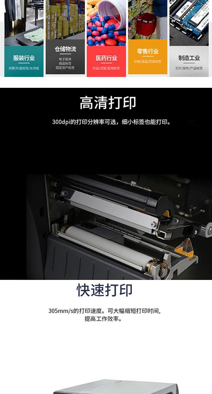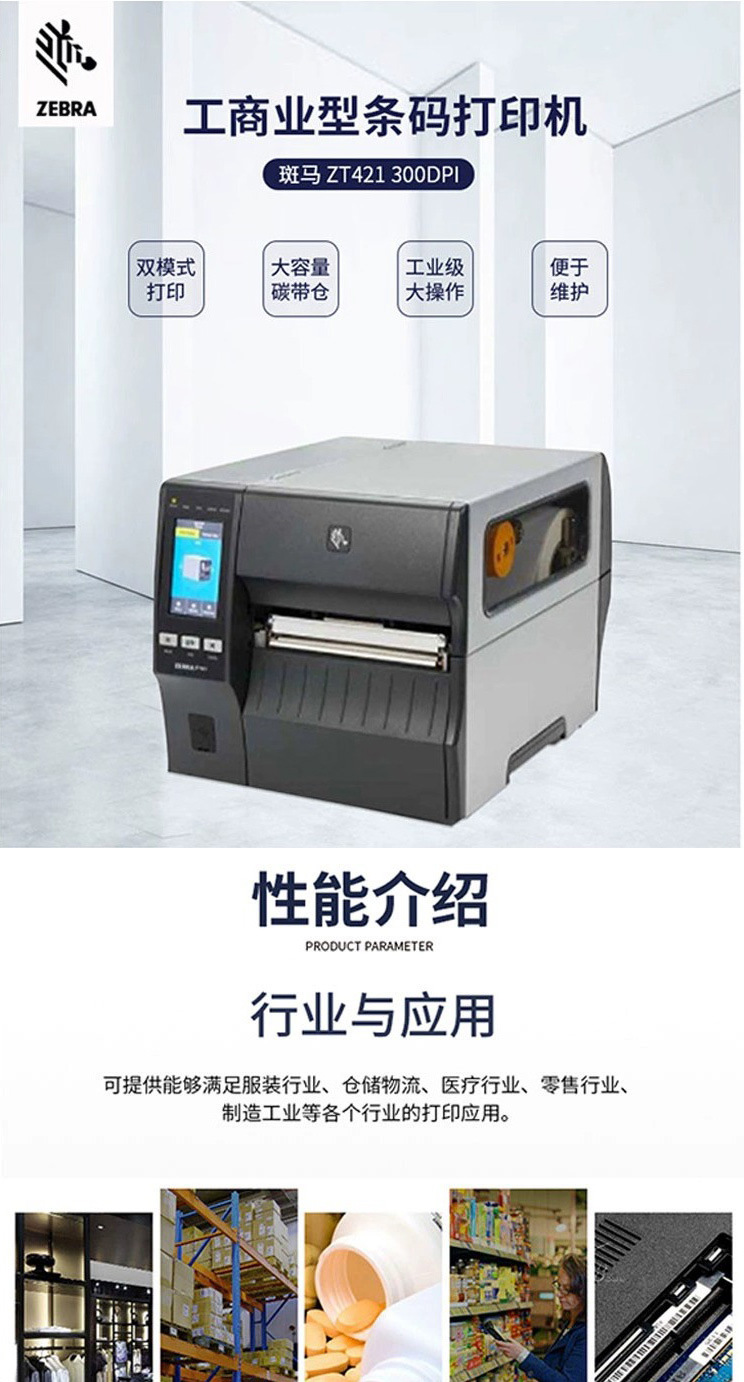 얼룩말 ZT421 산업용 바코드 라벨 프린터 접착 의류 태그 물 세척 마크 2 차원 와이드 푸스토어 가기