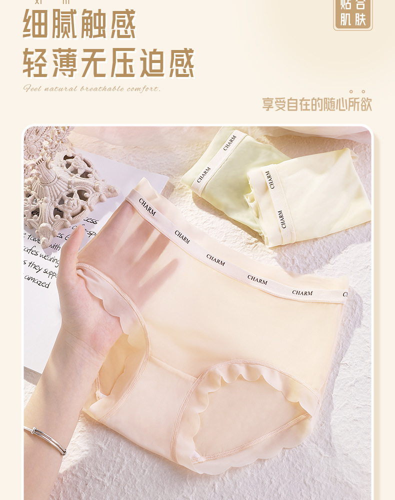 초경량 얇은 마스크 바지 새로운 여자 원활한 아이스 실크 속옷 여자 알몸 대비 허리 브리프 도매