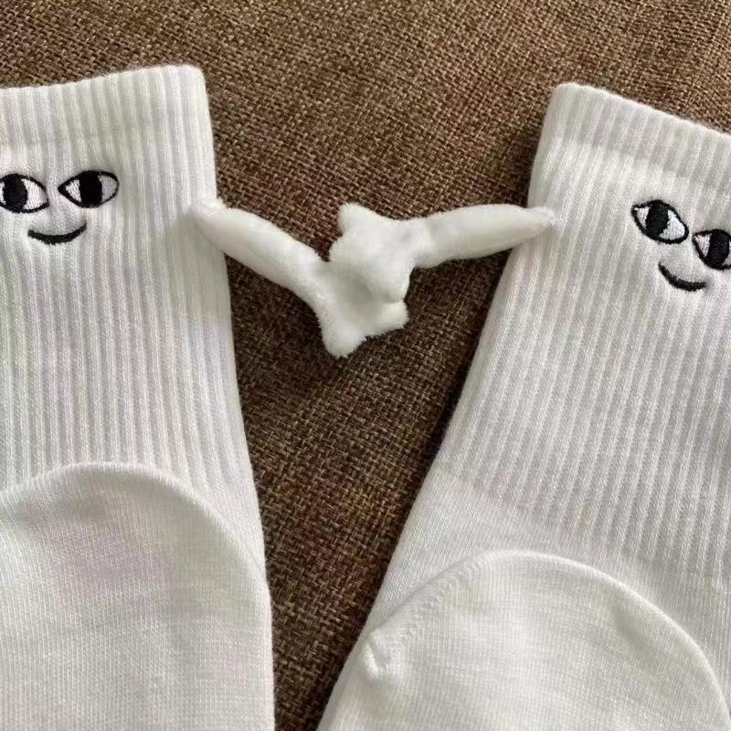 스마일 웃는 얼굴 입 마그네틱 커플 손 양말 흑백 튜브 양말 트렌드 여자 친구 귀여운 모든 경기 스타킹