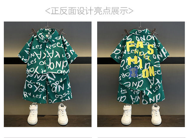 TZ128-green 바닥 편지 셔츠-세트-패션 티셔츠 여름 여름 아동 의류 잘 생긴 멋진 트렌드