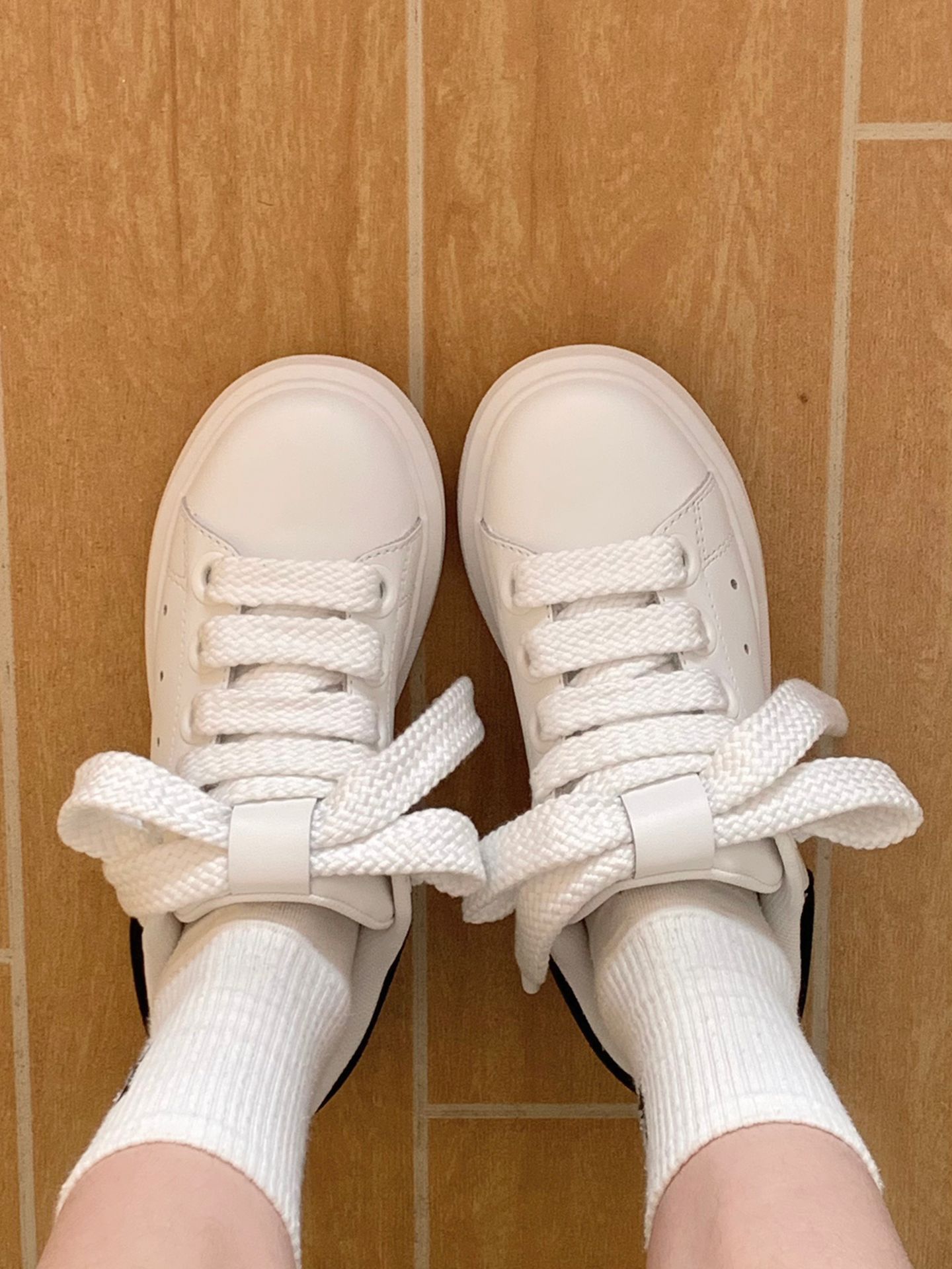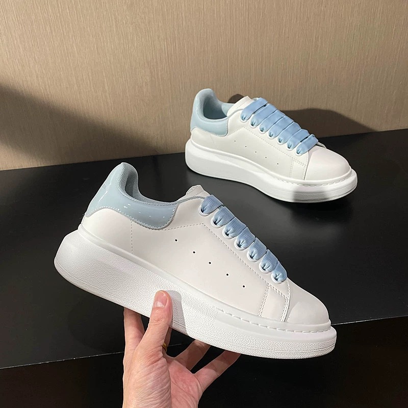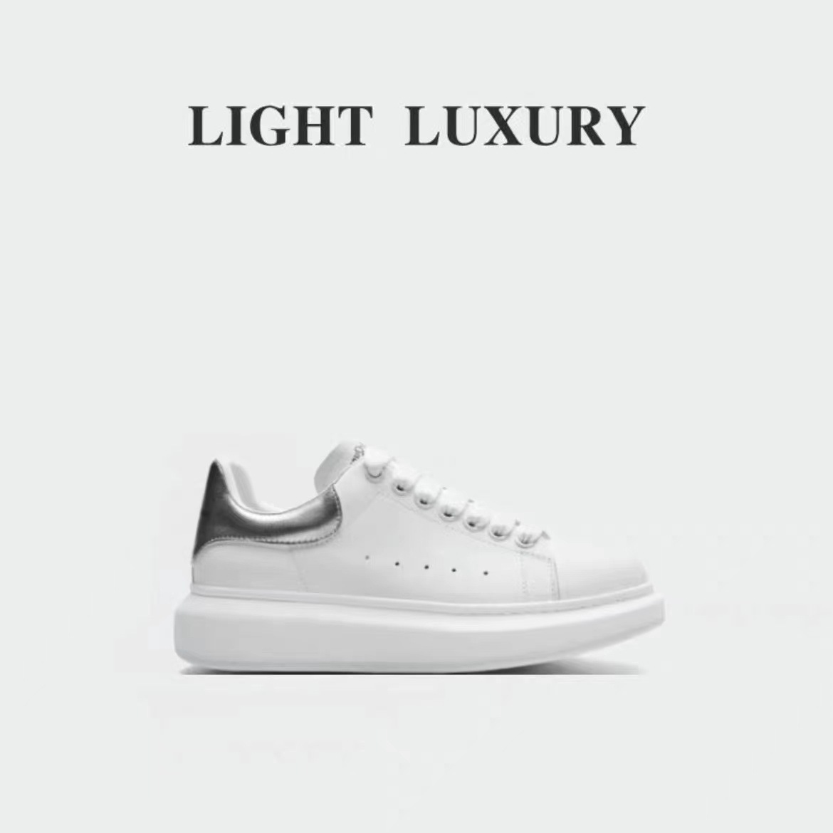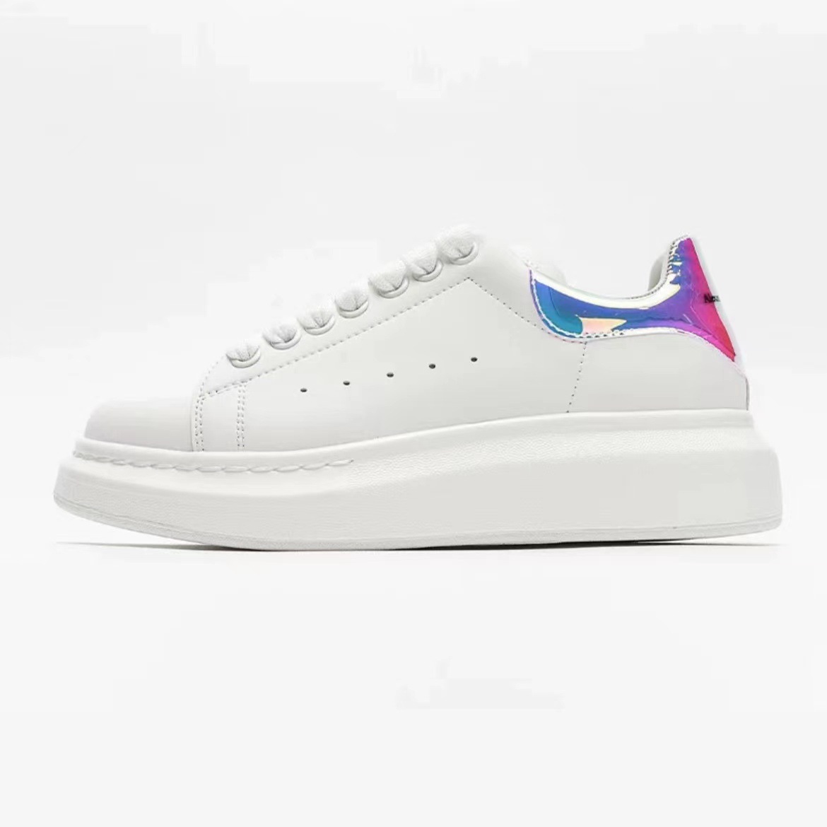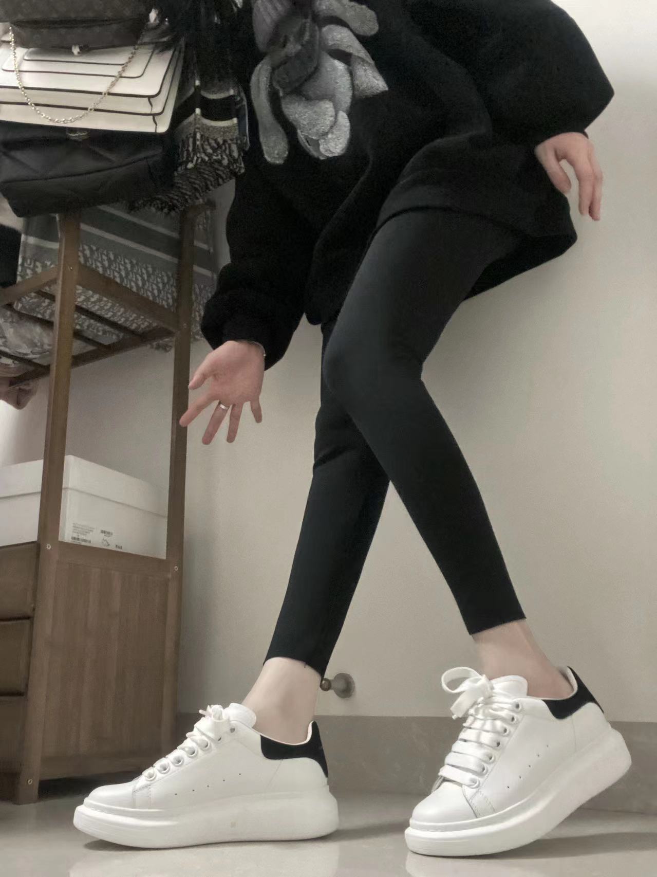 McQueen 흰색 신발 남성용 및 여성용 정품 가죽 봄과 여름 하이 버전 새로운 두꺼운 밑창 높이 증가 캐주얼 모든 경기 스케이트 신발스토어 가기