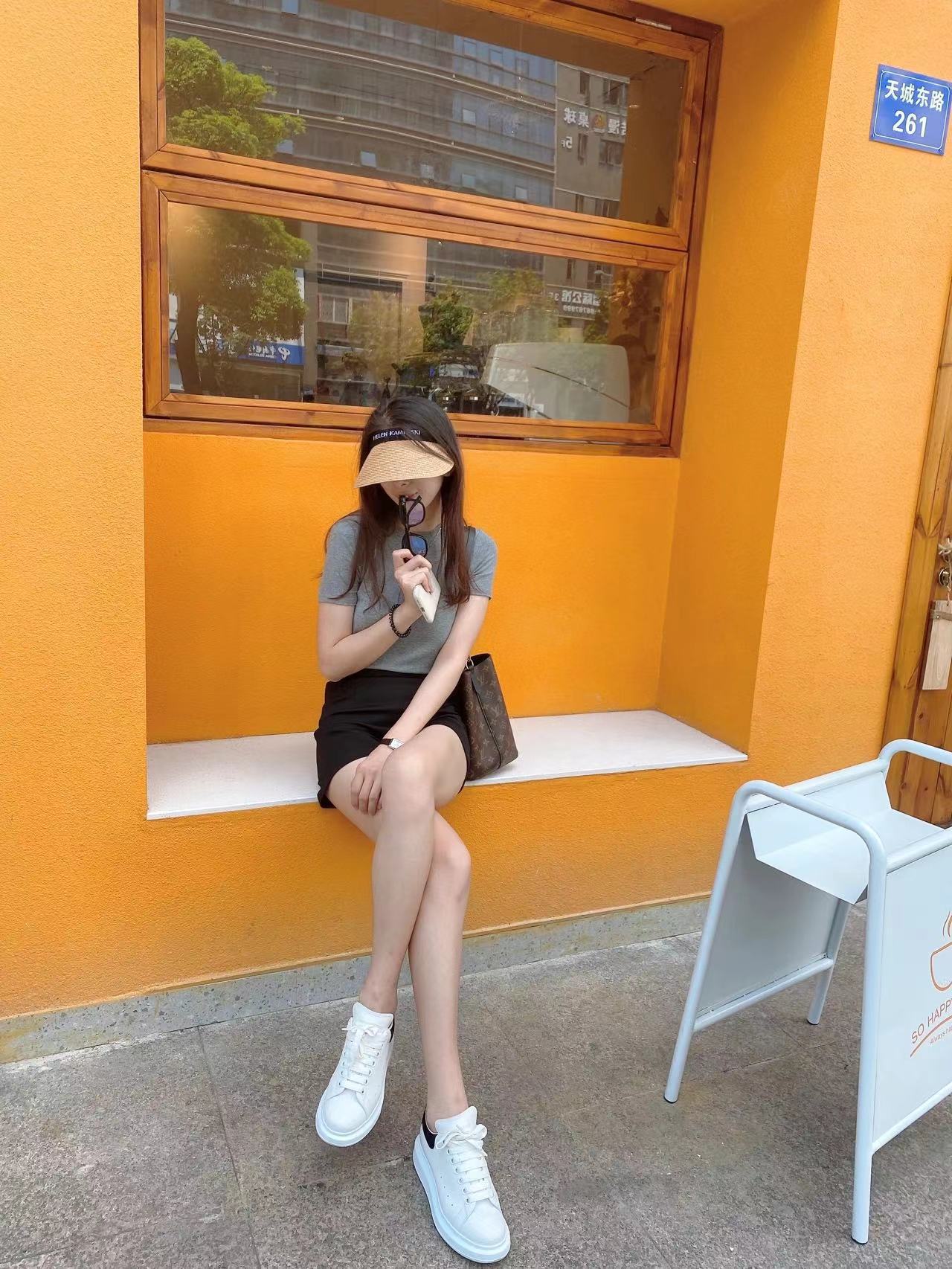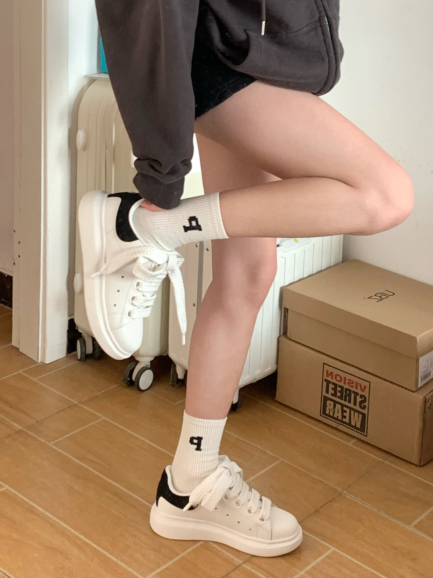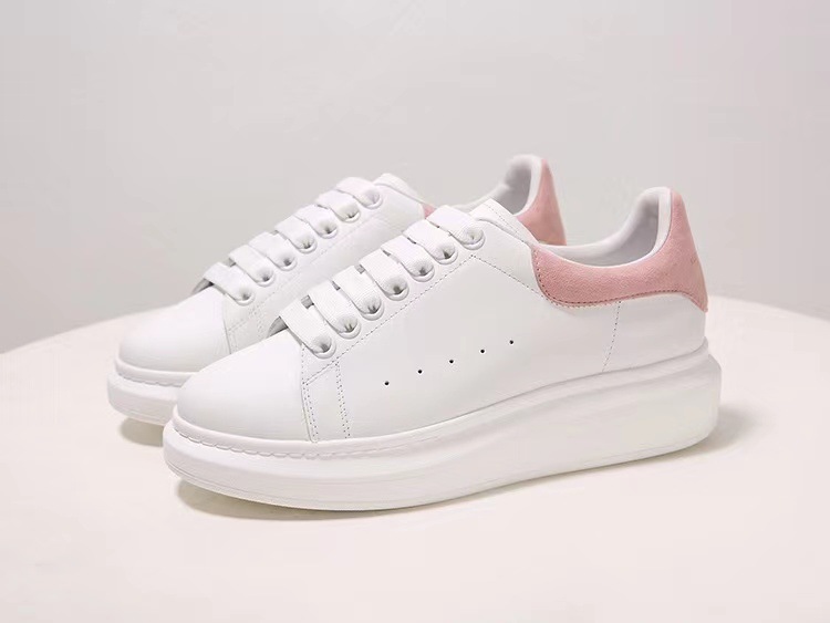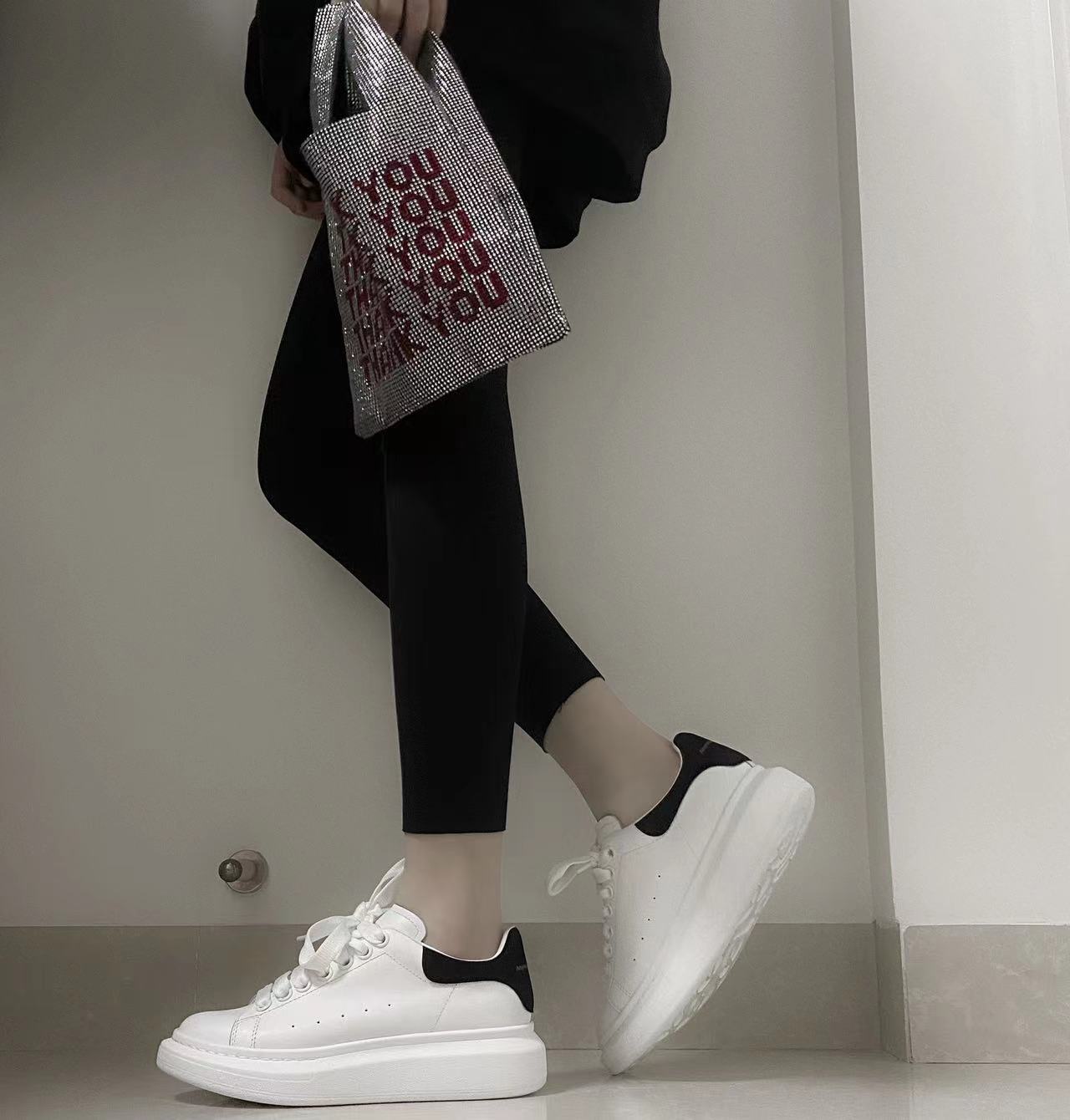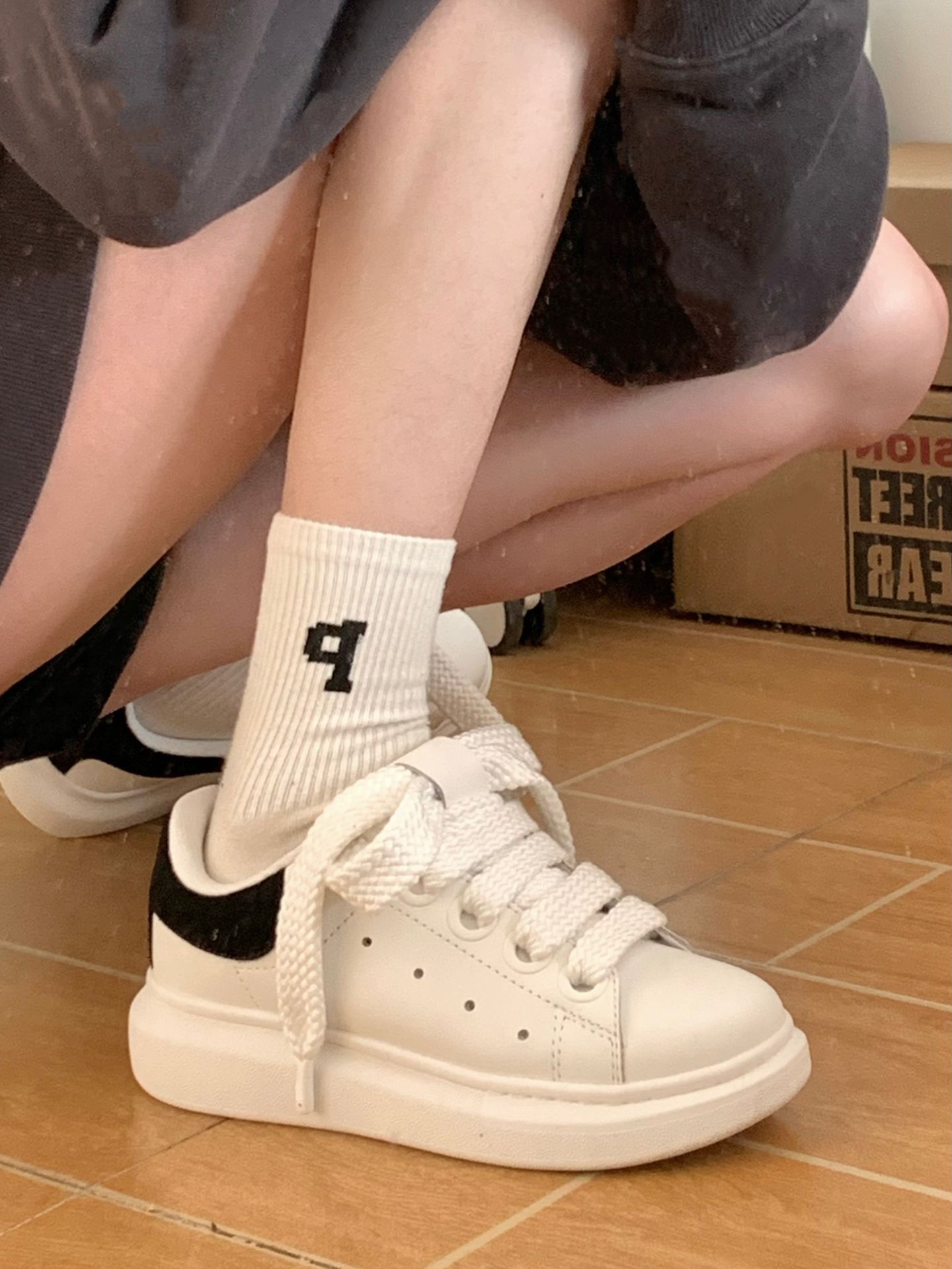 McQueen 흰색 신발 남성용 및 여성용 정품 가죽 봄과 여름 하이 버전 새로운 두꺼운 밑창 높이 증가 캐주얼 모든 경기 스케이트 신발스토어 가기
