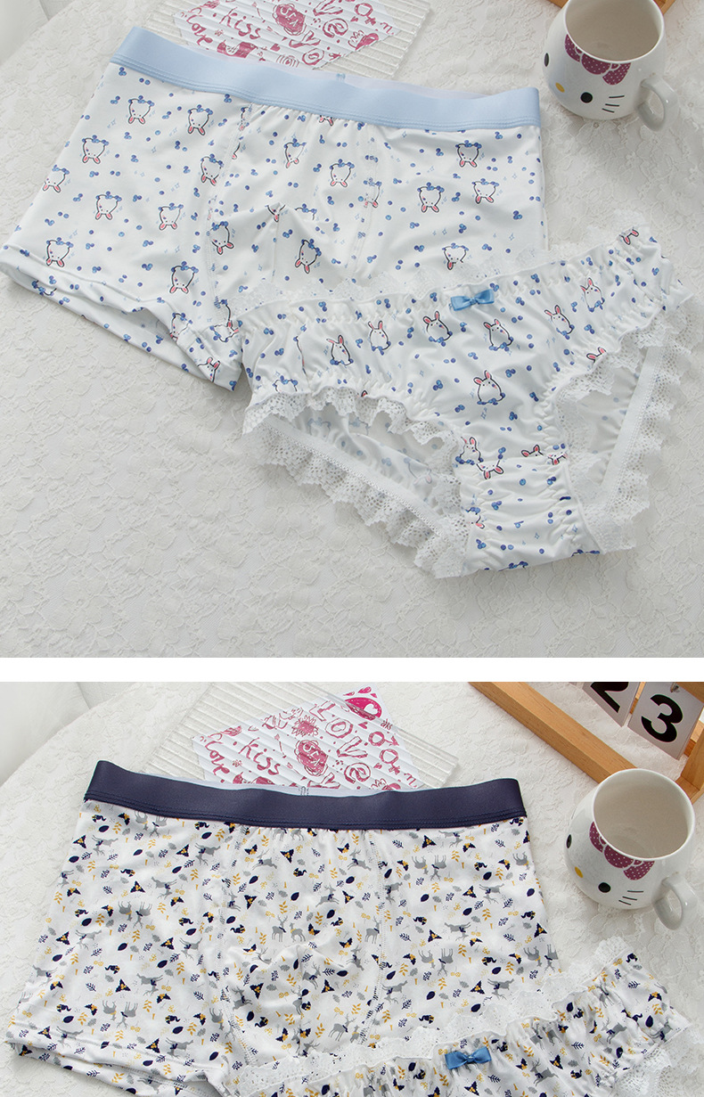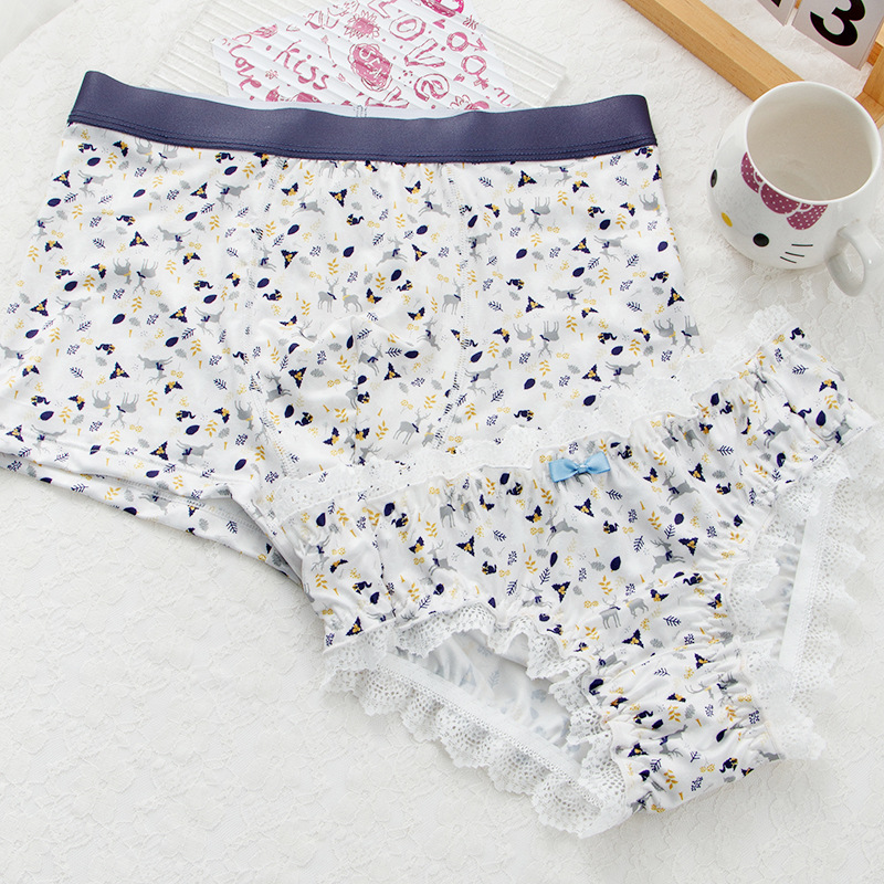 커플 팬티 새로운 스타일 한 남자와 한 여자 순수 레이스 삼각형 달콤한 꽃 소녀 귀여운 남자 복서 반바지