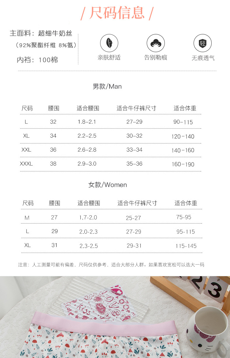 커플 팬티 새로운 스타일 한 남자와 한 여자 순수 레이스 삼각형 달콤한 꽃 소녀 귀여운 남자 복서 반바지스토어 가기