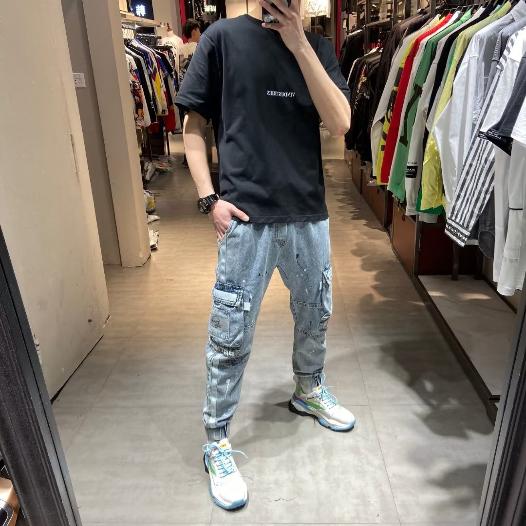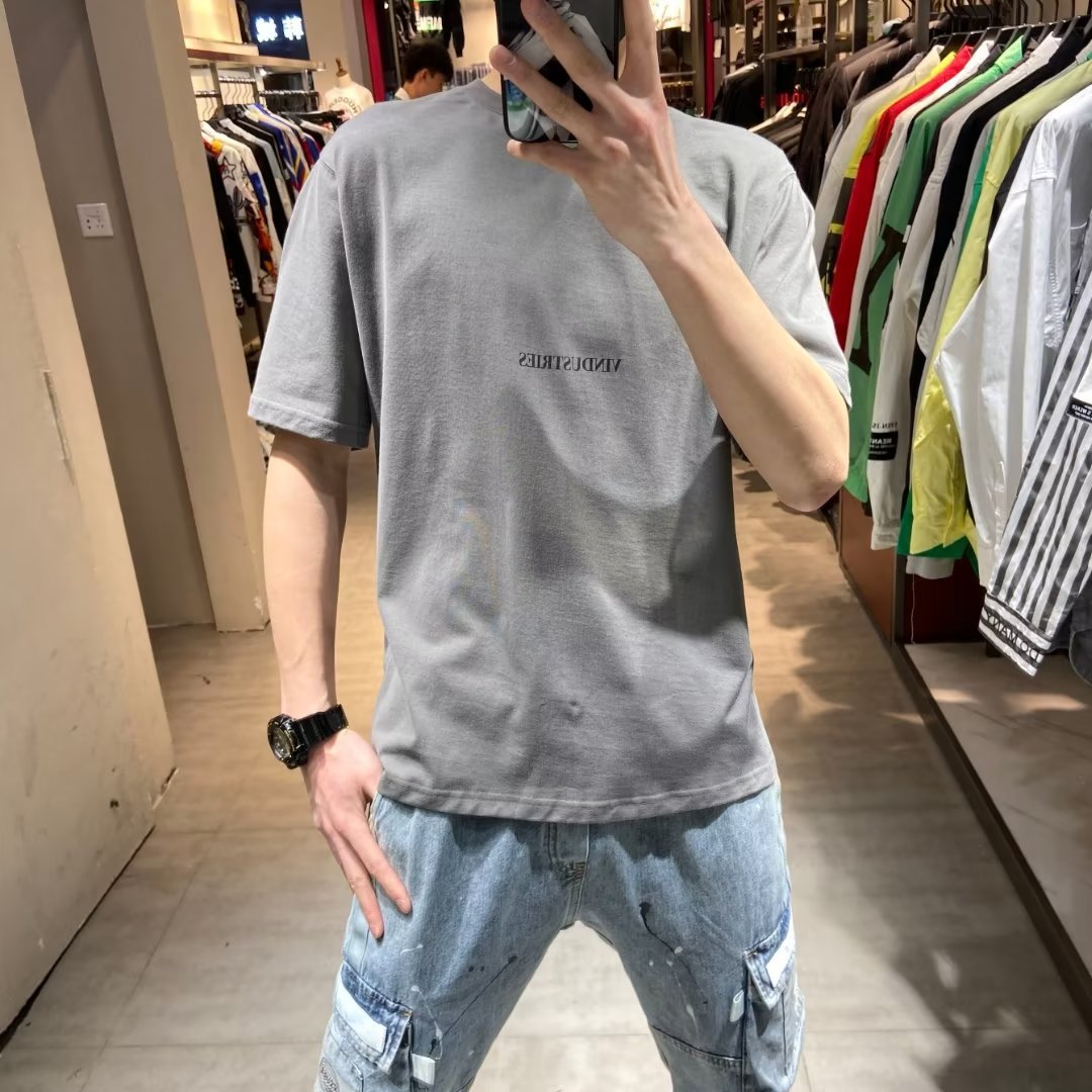한국식 핫 드릴링 레터 인쇄 라운드 넥 느슨한 하이 엔드 센스 성격 패션 틈새 디자인 센스 티셔츠 남성용 미디엄 및 반팔스토어 가기