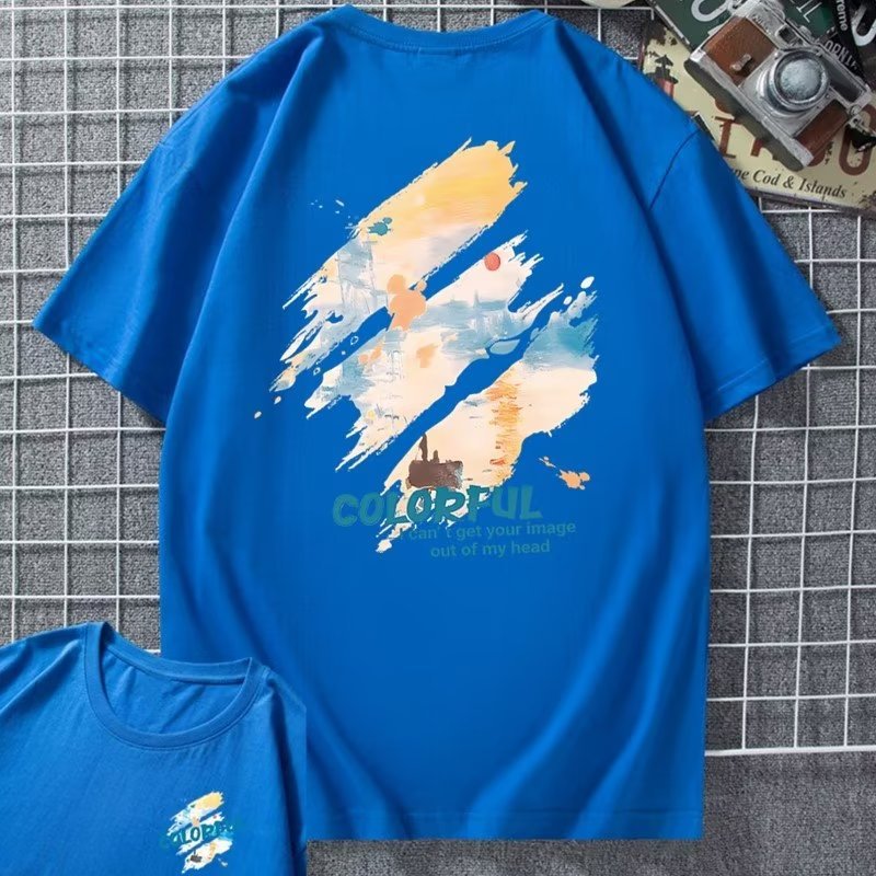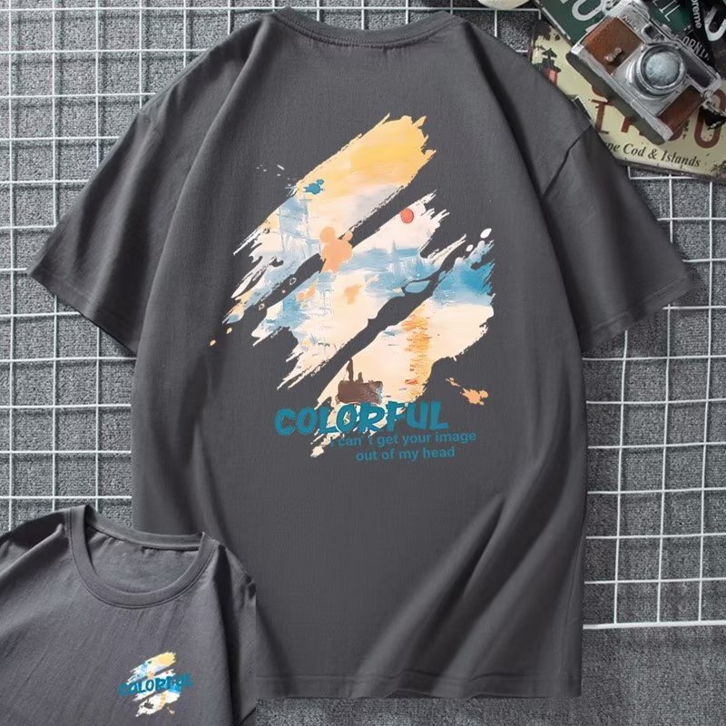 여름 라운드 넥 캐주얼 느슨한 데일리 티셔츠 청소년 인기있는 도시 스타일 패션 브랜드 5 점 슬리브 표준 남성