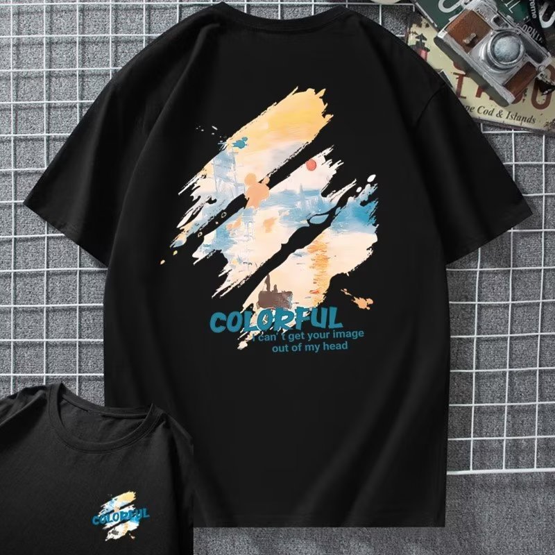 여름 라운드 넥 캐주얼 느슨한 데일리 티셔츠 청소년 인기있는 도시 스타일 패션 브랜드 5 점 슬리브 표준 남성스토어 가기