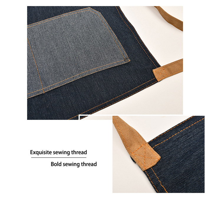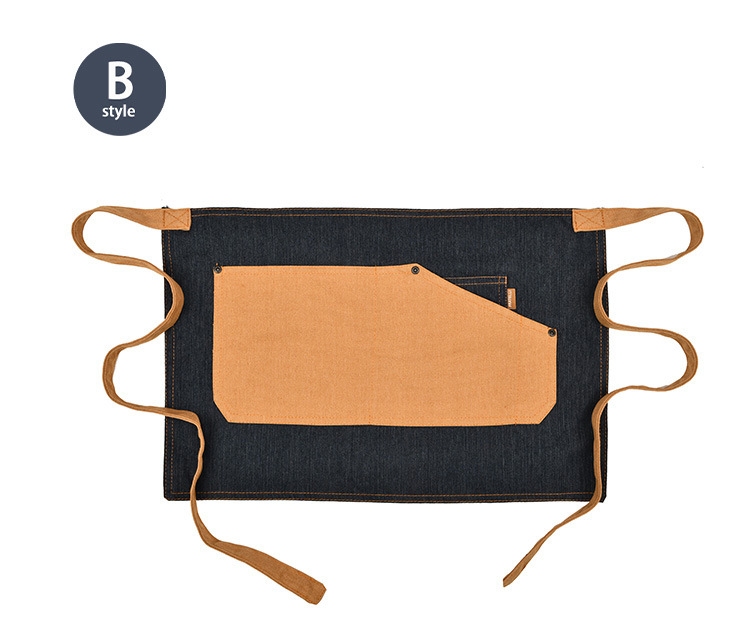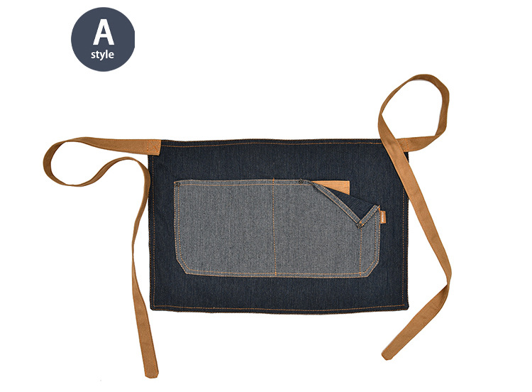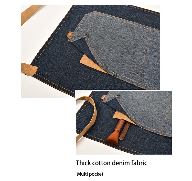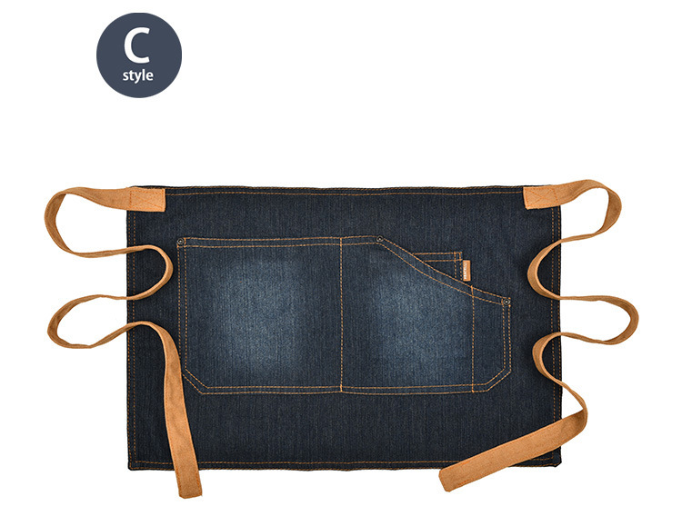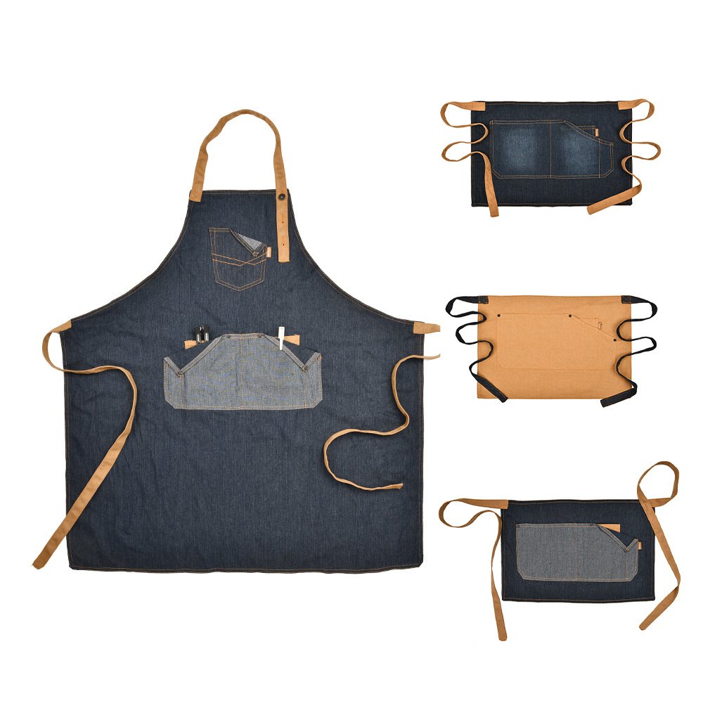 데님 하프 바디 앞치마 워싱 컬러 블록 멀티 컬러 로고 호텔 레스토랑 주방 작업복