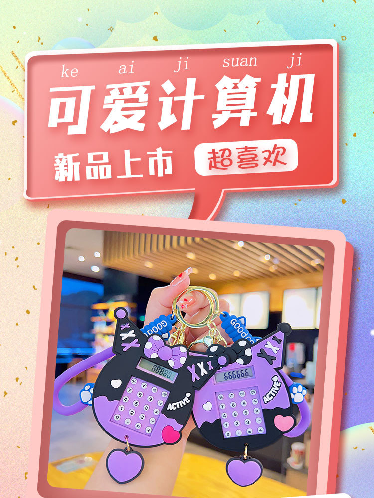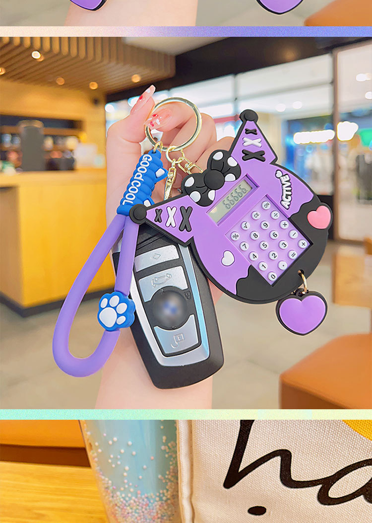 만화 Kloomi 계산기 귀여운 창조적 인 작은 선물 도매 자동차 키 체인 펜던트 학생 책가방 펜던트스토어 가기