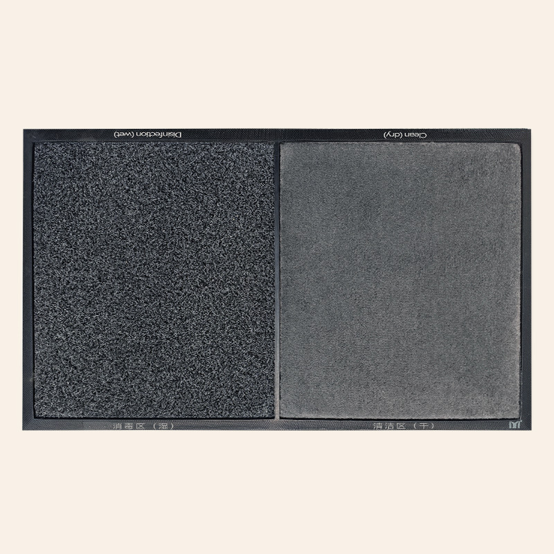 这款干湿消毒门垫,不仅可以做进门换鞋地垫,还可以在商场商铺等公共场所消毒清洁使用,可以生产不同样式,可根据需要印制文字logo等,需要印制那种版本 请下单前联系客服咨询,这款消毒门垫是干湿两用,毯面是涤纶+草坪丝两种材质,合成橡胶底,具有良好的防滑、除尘耐脏作用。一体化封边高边设计,在使用时建议使用喷壶适量在草丝消毒区均匀喷洒。
