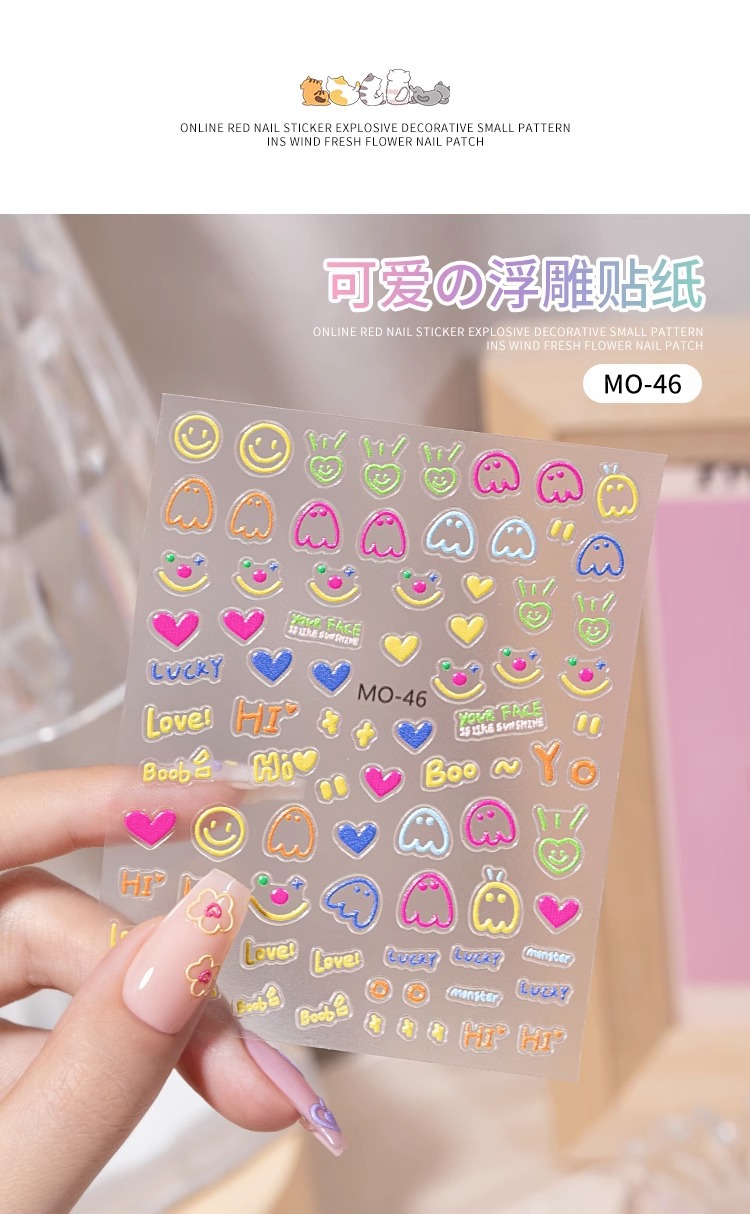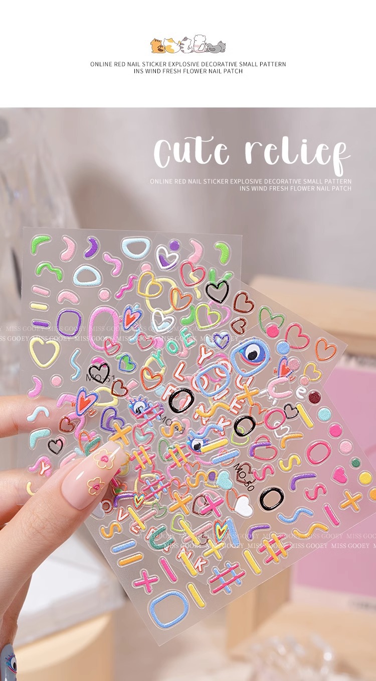 네일 도파민 낙서 스티커 귀여운 라인 서클 사랑 웃는 얼굴 화려한 입체 접착제 네일 장식