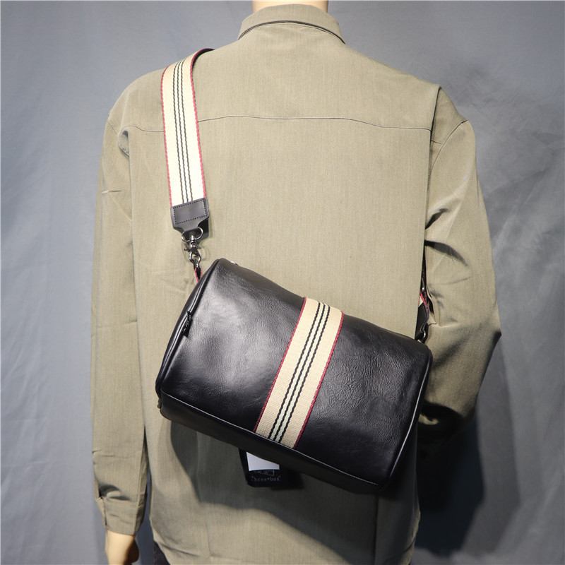 3 박스 트렌디 브랜드 남성용 스트라이프 숄더백 캐주얼 한국식 일본식 리본 크로스바디 백팩 대용량 자전거 가방스토어 가기