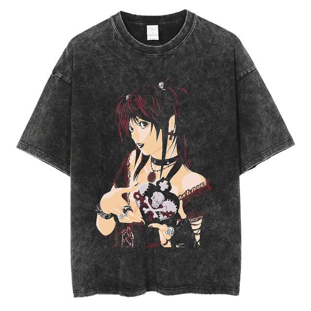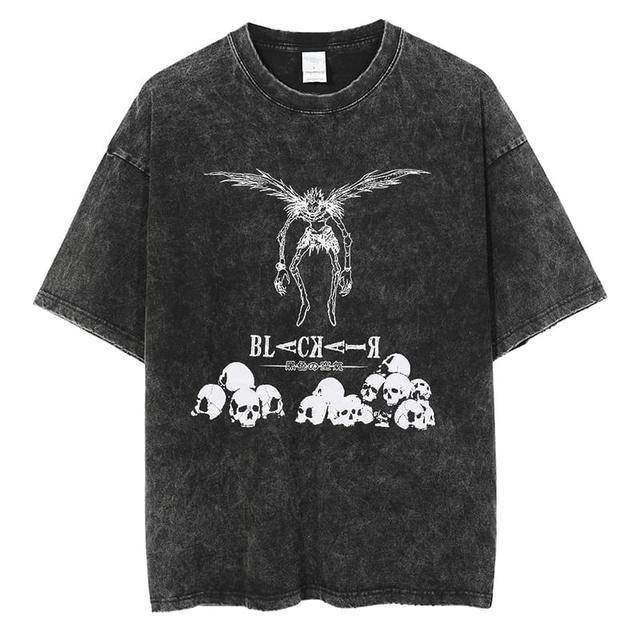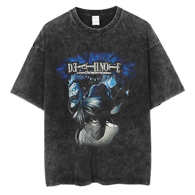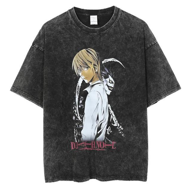 크로스 보더 새로운 패션 브랜드 워싱 레트로 남성용 반팔 티셔츠 여름 애니메이션 주변 기기 인쇄 루즈한 티셔츠 남성용 면스토어 가기