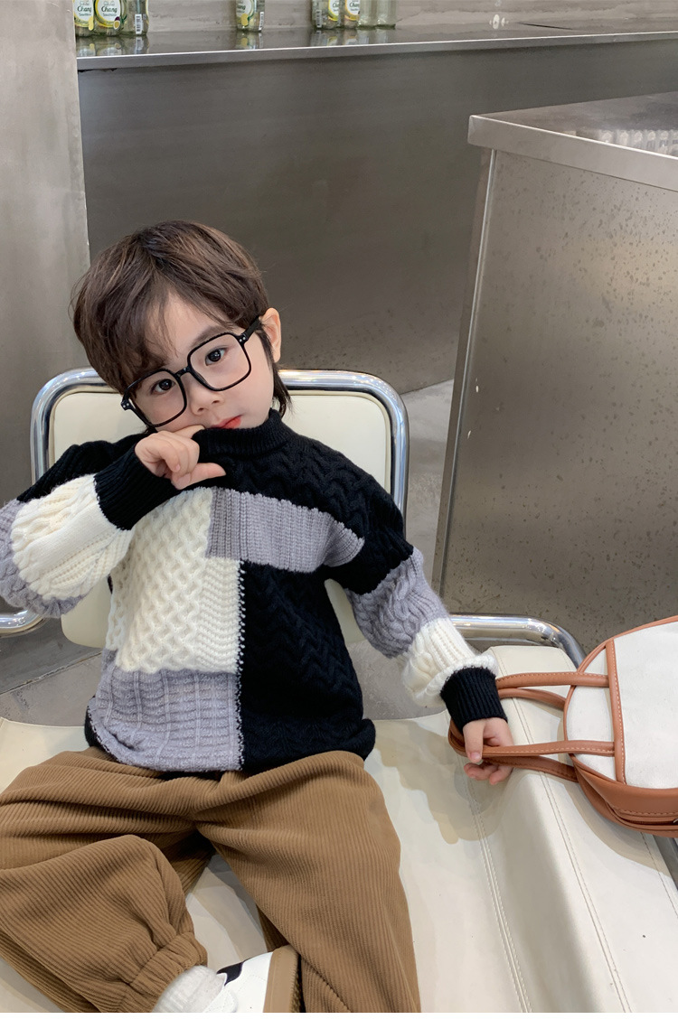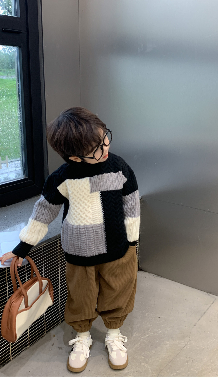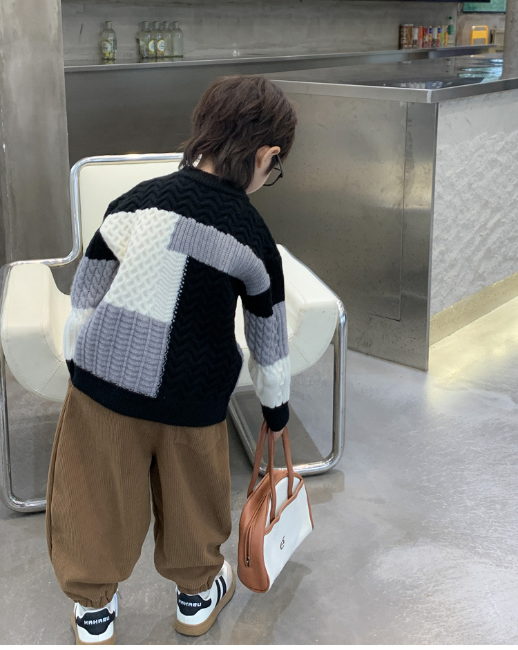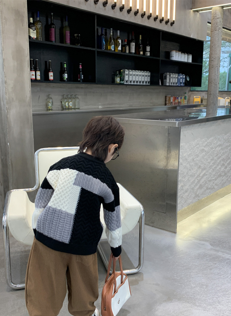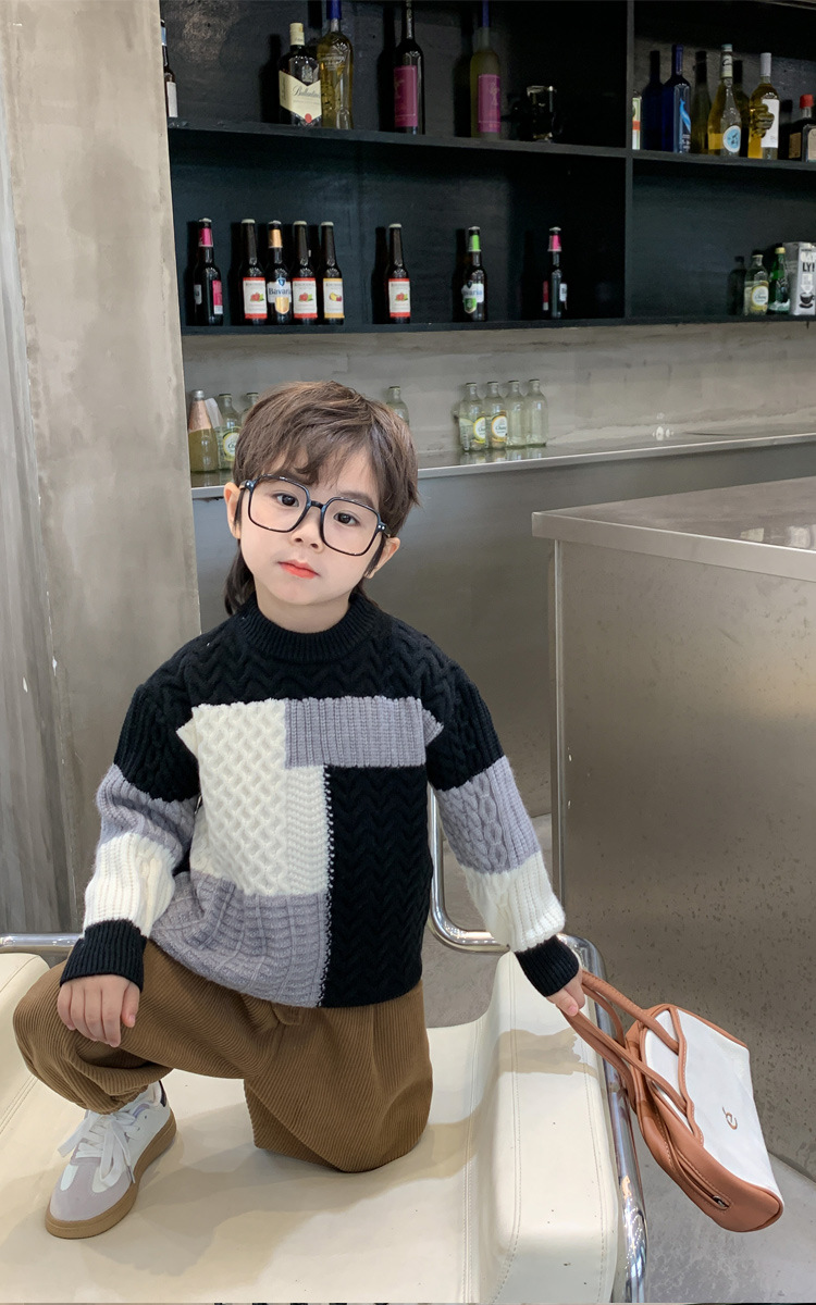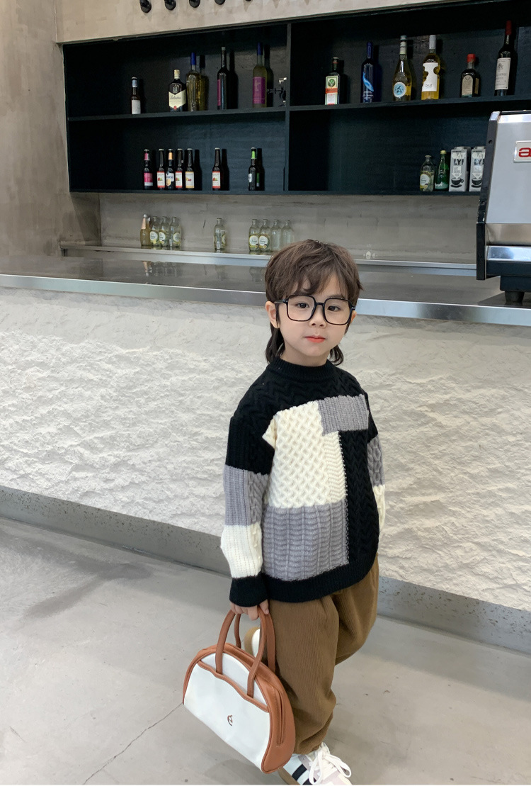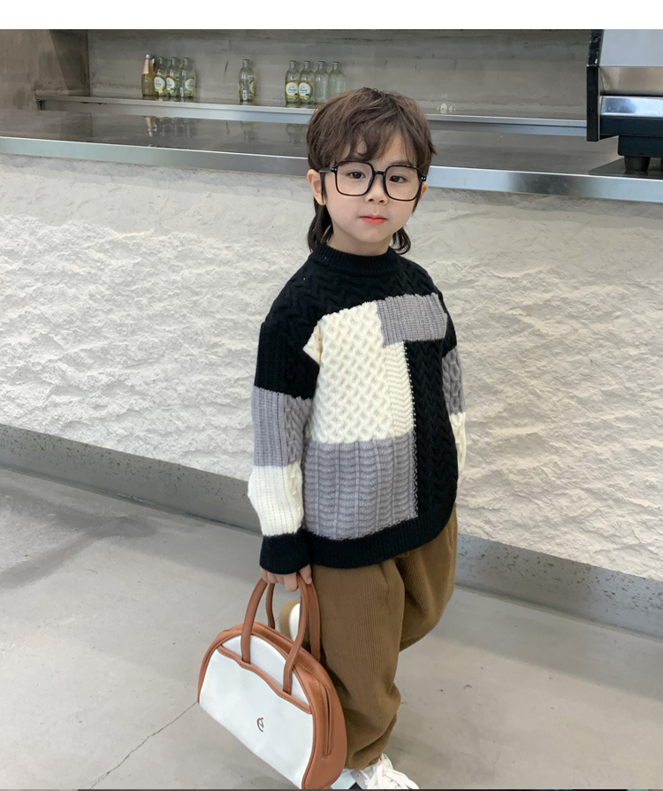 엄선된 아동 가을 스웨터 2024 배색 풀오버 니트웨어 봄 가을 아동복 유아 상의 개성 스타일스토어 가기