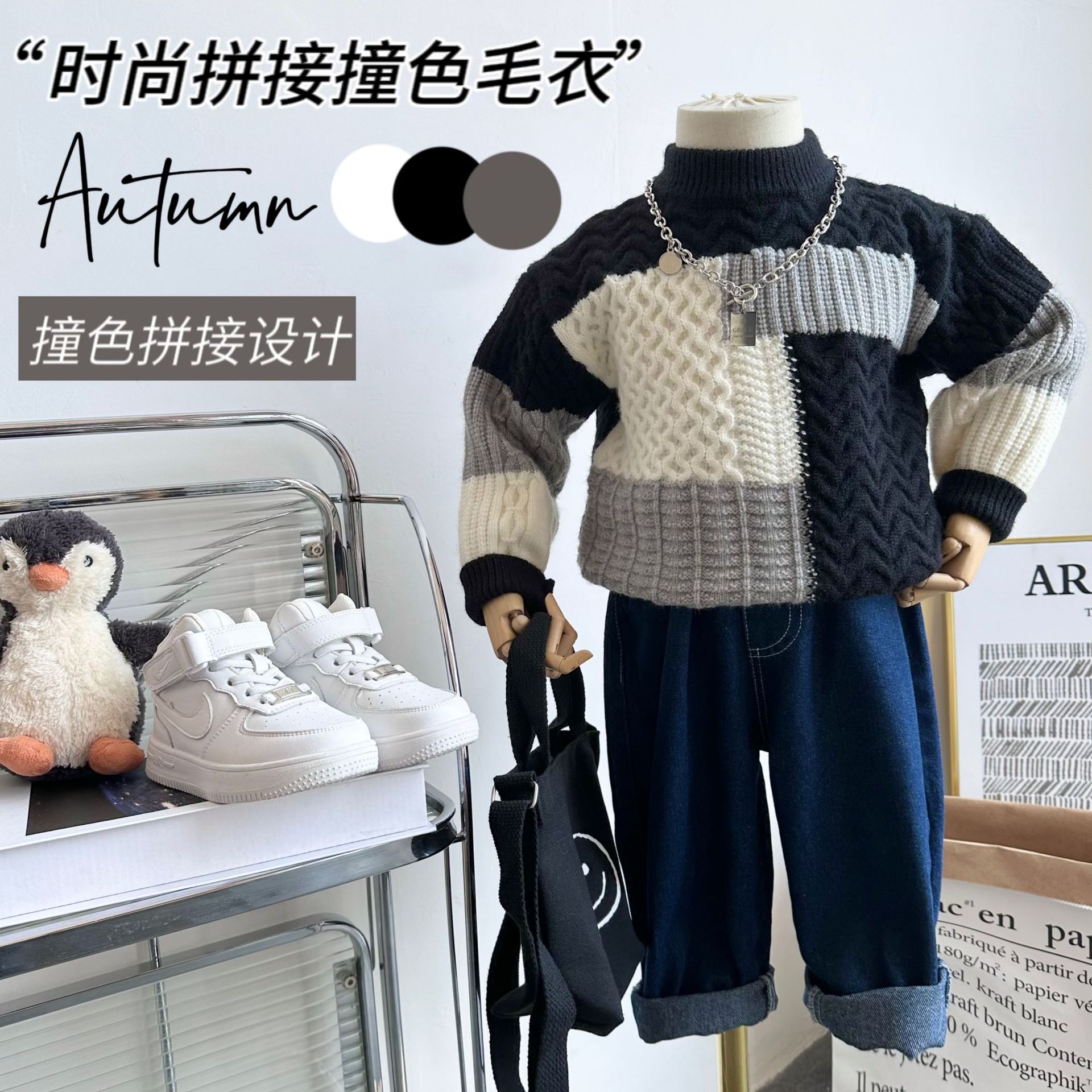 엄선된 아동 가을 스웨터 2024 배색 풀오버 니트웨어 봄 가을 아동복 유아 상의 개성 스타일