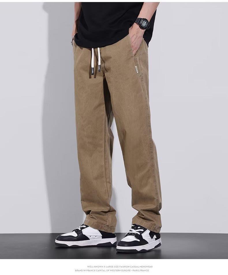 아메리칸 스타일 복고풍 남자의 캐주얼 바지 봄과 가을 복고풍 카키 여름 얇은 느슨한 스트레이트 와이드 다리 긴 바지