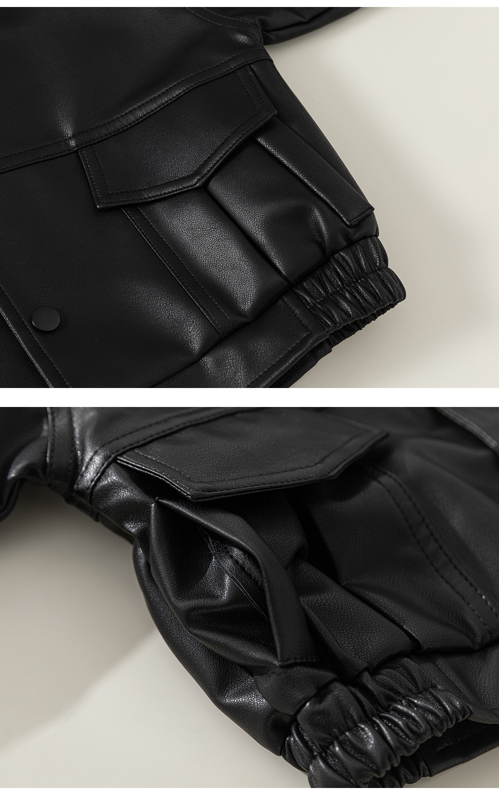 유바오 아동복 가을 남아용 코트 단색 가죽 자켓 바이커 펑크 스타일 가죽 자켓 멋진 여아용 코트