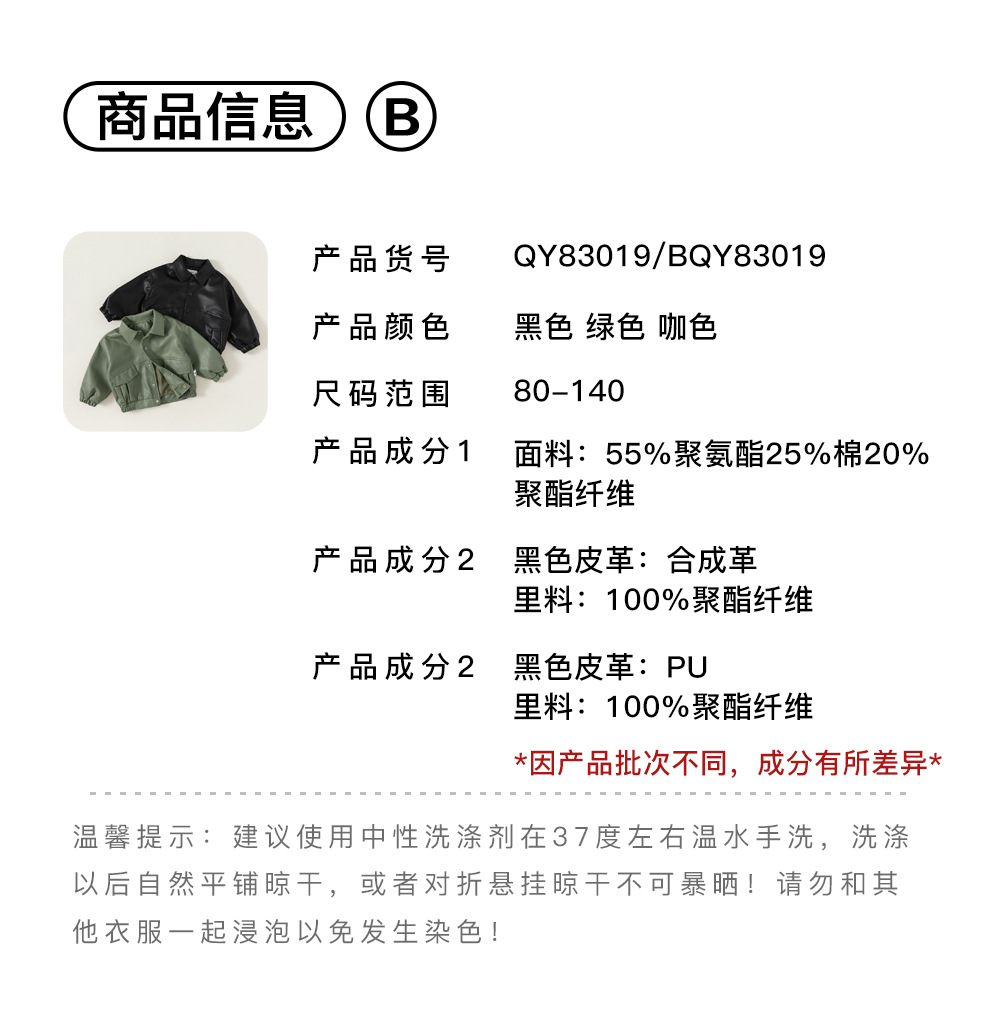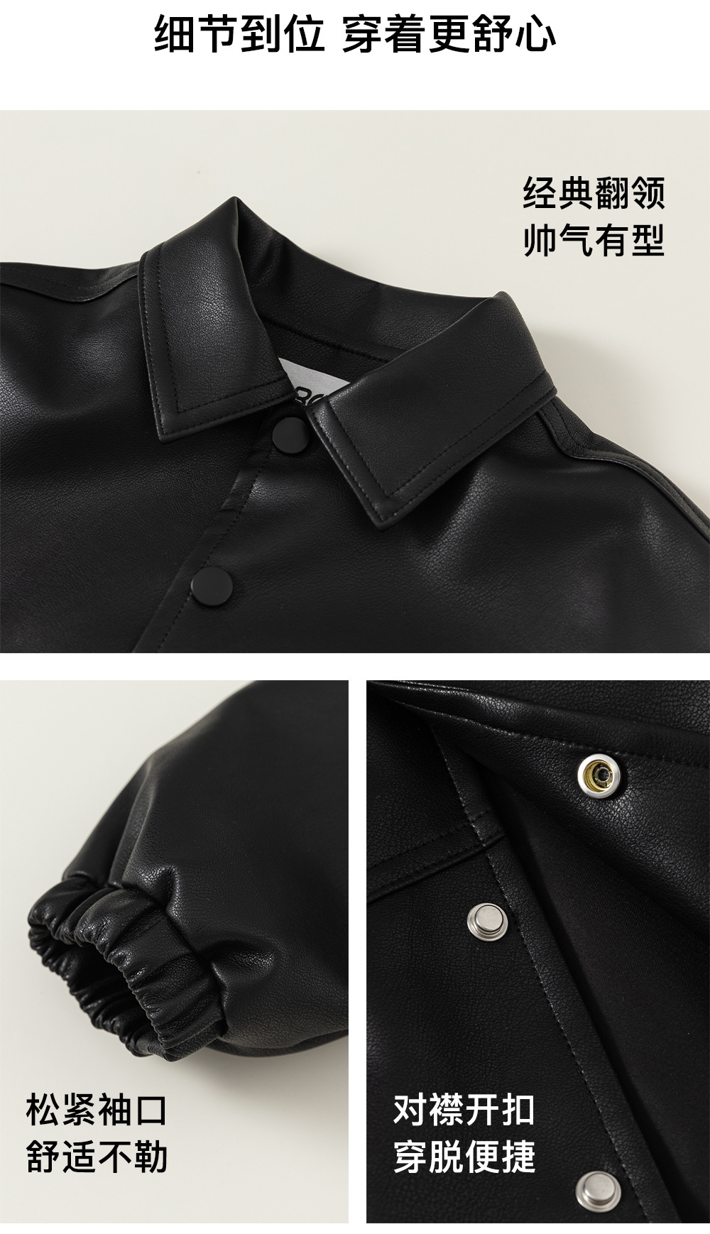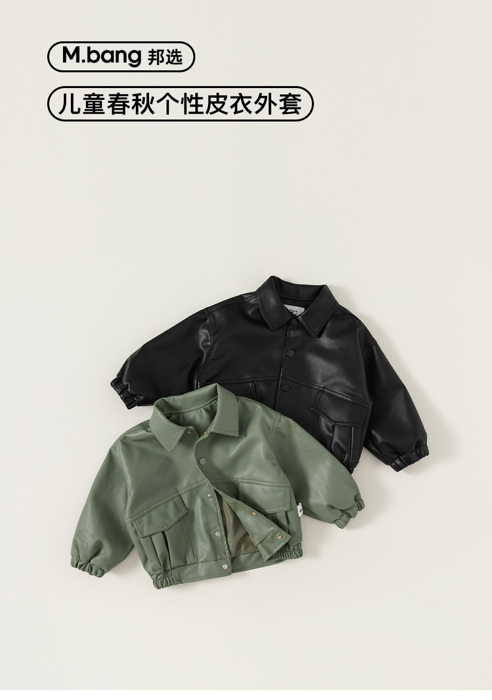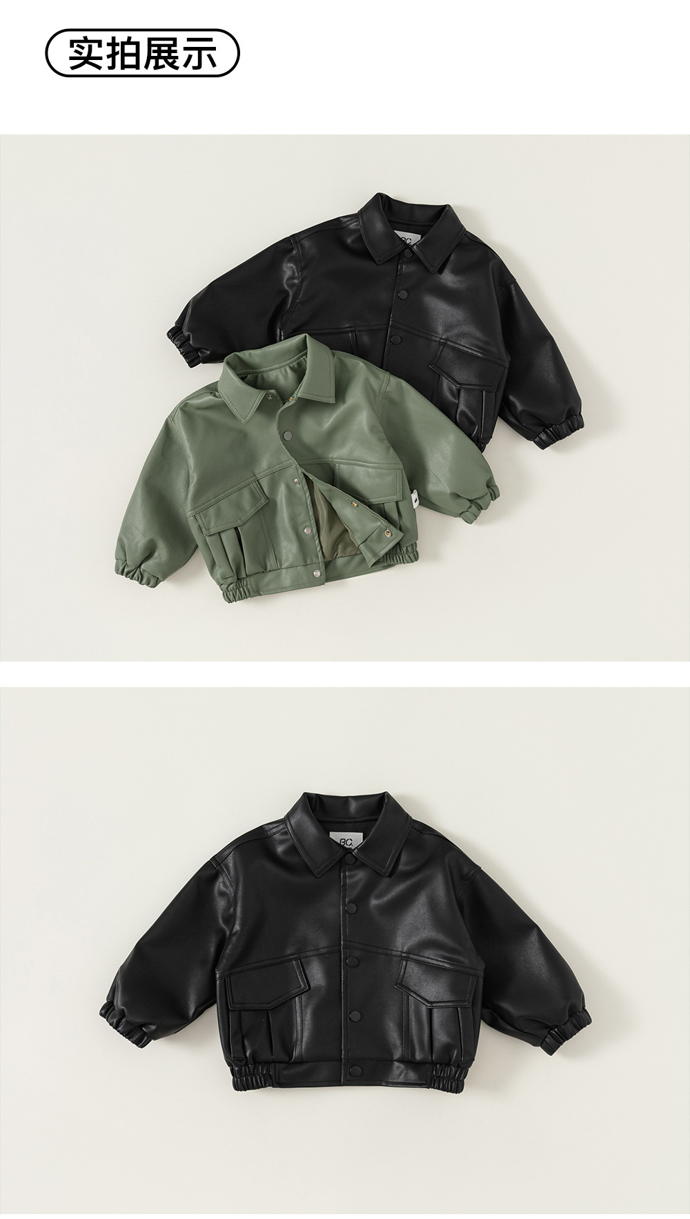유바오 아동복 가을 남아용 코트 단색 가죽 자켓 바이커 펑크 스타일 가죽 자켓 멋진 여아용 코트스토어 가기