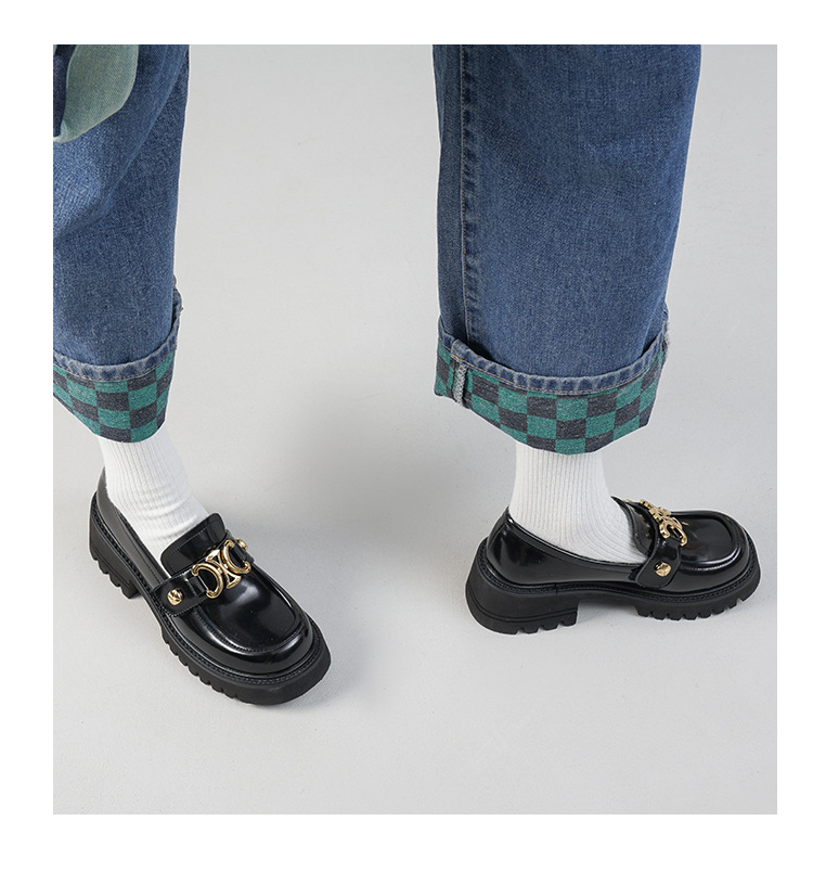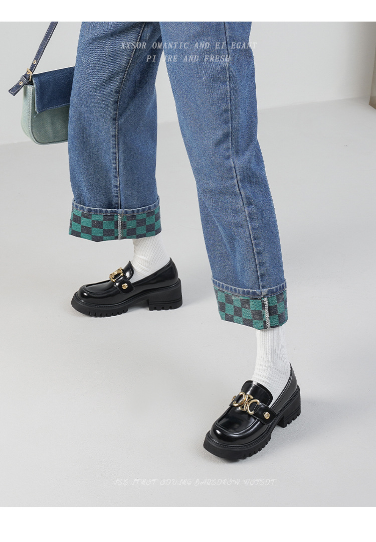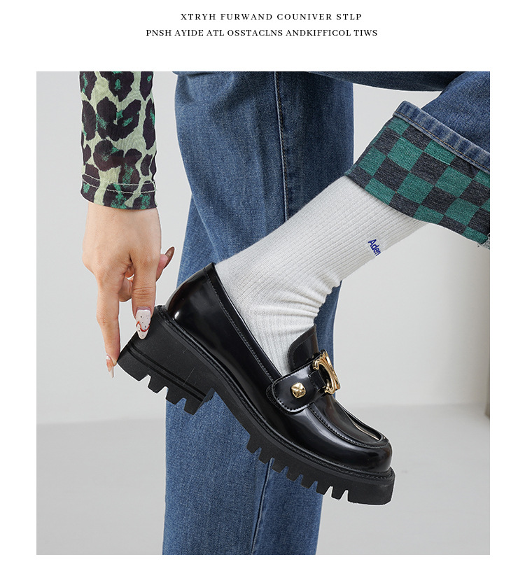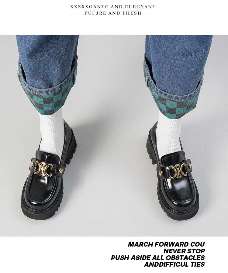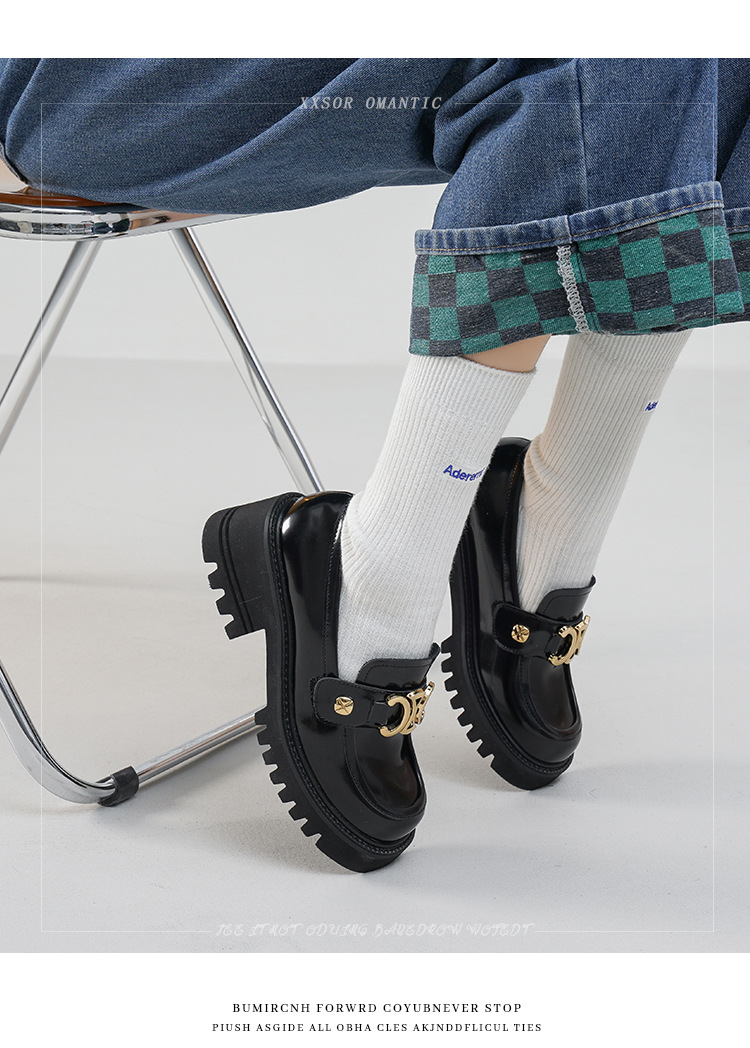 영국 스타일 두꺼운 밑창 로퍼 2023 새로운 2 착용 벨크로 월병 단층 신발 여성용 높이 라운드 토 작은 가죽 신발스토어 가기