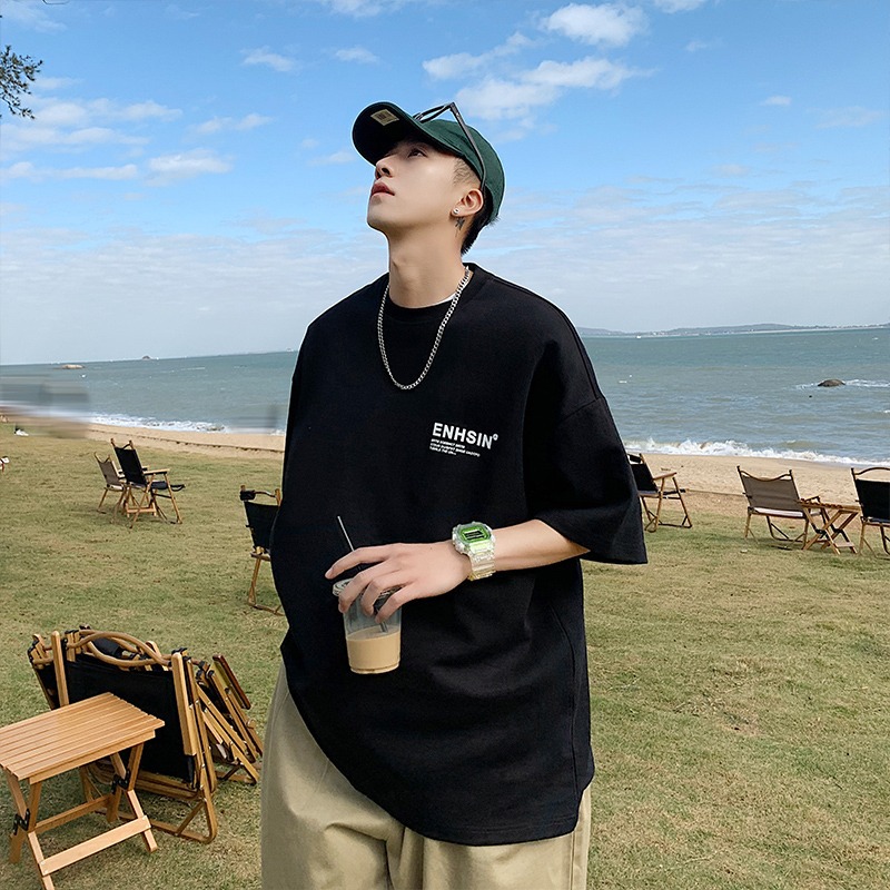 Ins 반팔 티셔츠 남성 유행 2024 새로운 여름 반팔 티셔츠 5 점 바닥 셔츠 탑 의류 bf 대외 무역스토어 가기