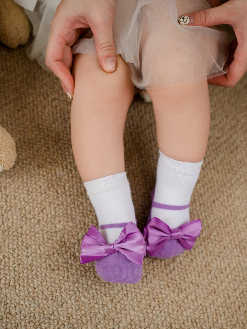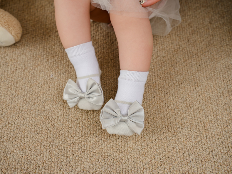 2025 봄 미끄럼 방지 아기 더블 보우 바닥 홈 놀이터 신발과 양말 아기 아기 첫 번째 생일 양말