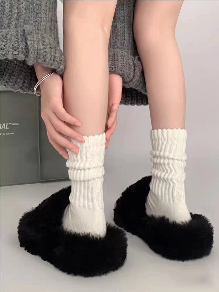 여름 얇은 클래식 단색 양말 모든 일치 단색 중간 튜브 스택 양말 두꺼운 라인 양말 여성용 긴 튜브 울 커프 양말