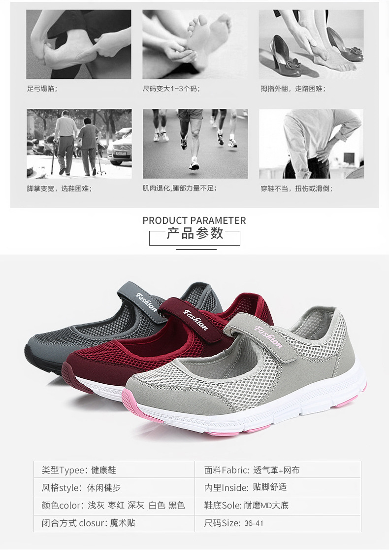 2023 봄 새로운 노인 신발 가벼운 캐주얼 신발 편안한 워킹 여성 신발 벨크로 어머니 신발 사이즈 35-42