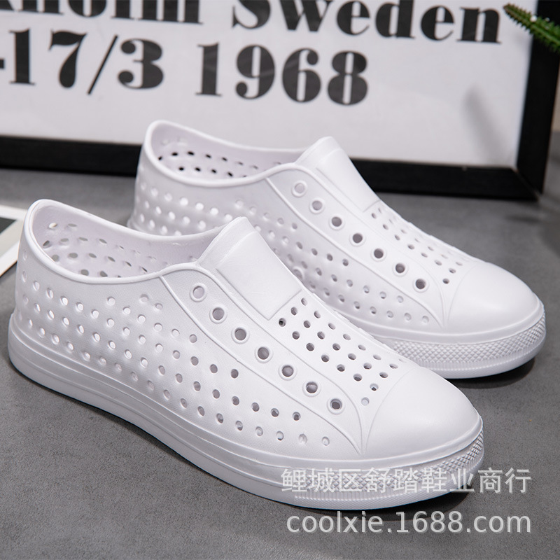 여름 발가락 구멍 신발 남성 샌들 한국식 운동화 슬립온 샌들 커플 남성용 및 여성용 비치 슈즈 흰색 신발스토어 가기