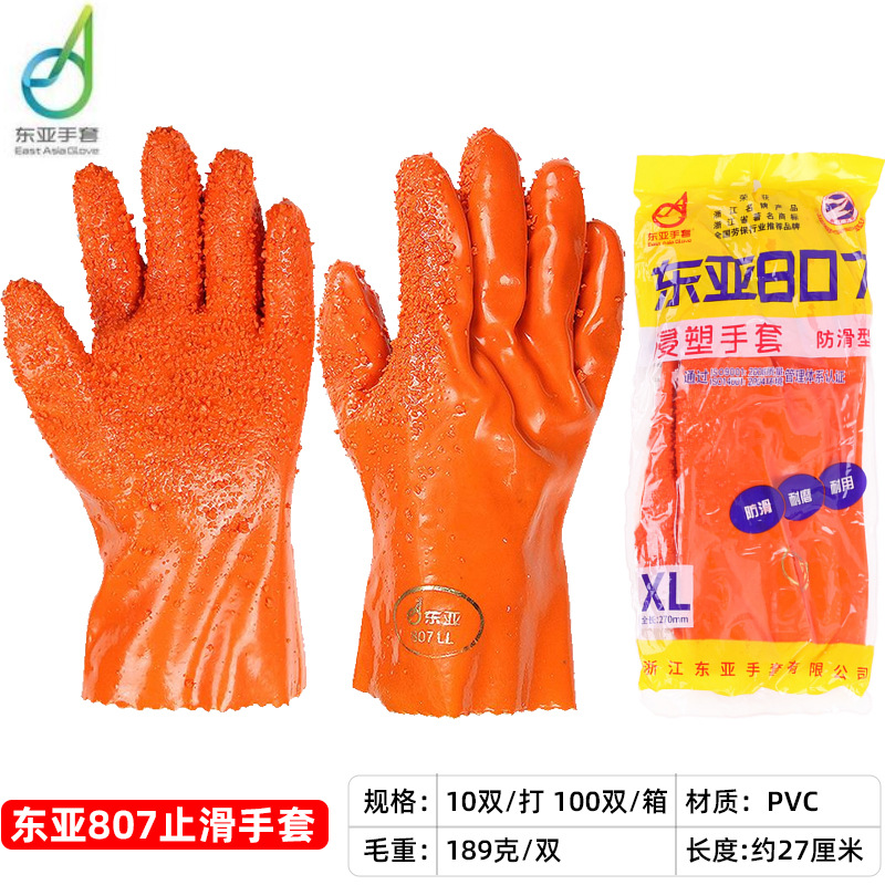 동아시아 807 미끄럼 방지 장갑 플라스틱 담근 과립 장갑 내유성 고무 내마모성 미끄럼 방지 보호 노동 보호 장갑