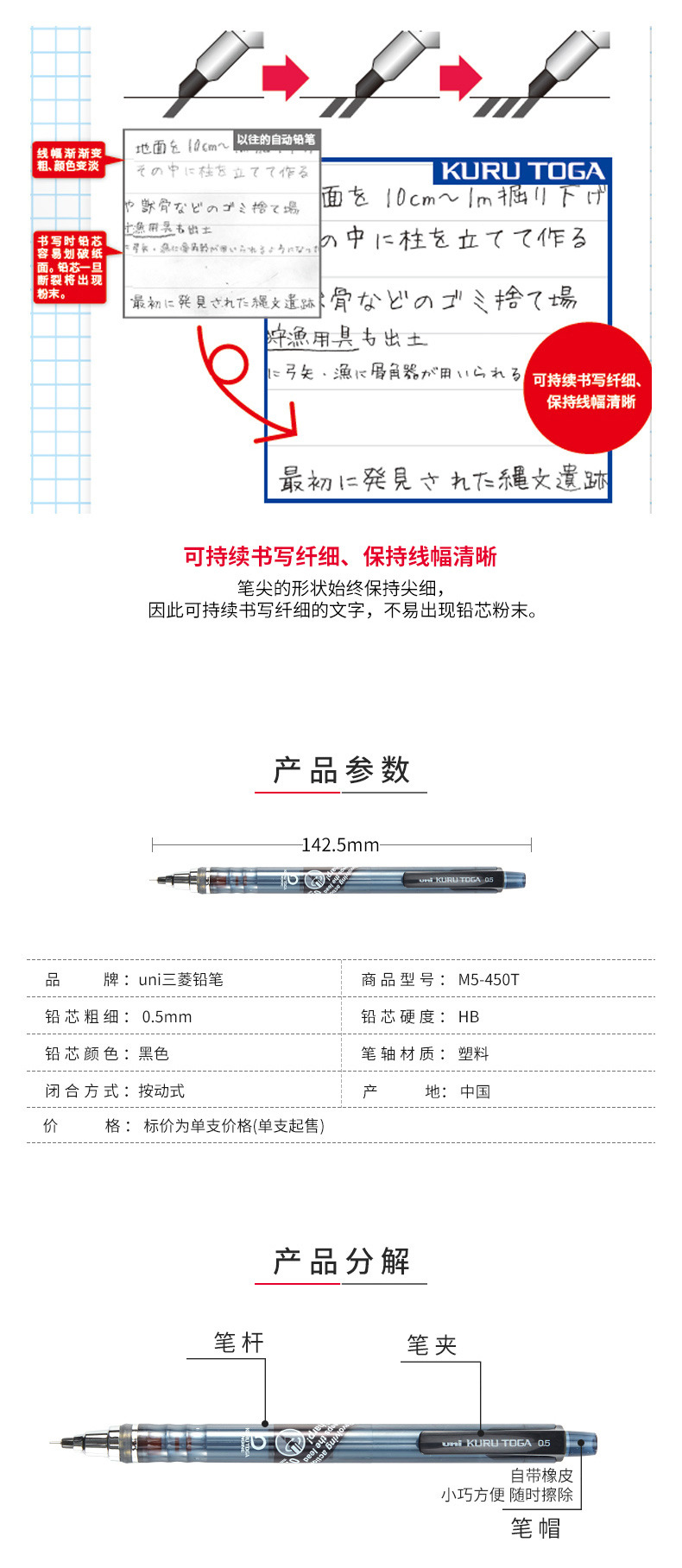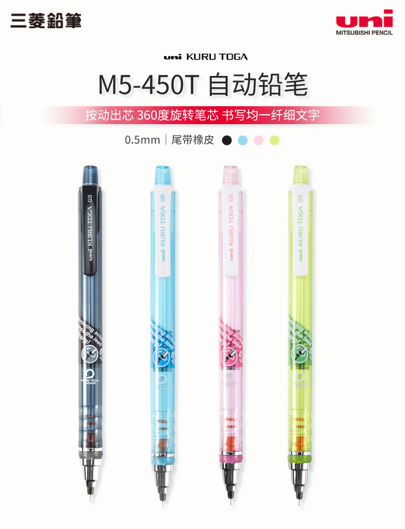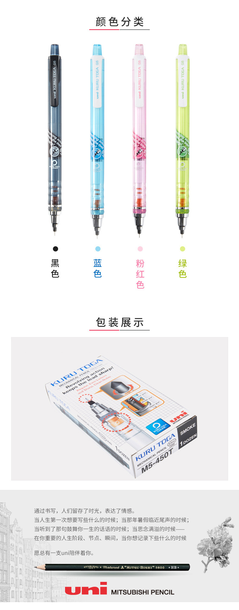 일본 UNI 미쓰비시 M5-450/M-450T 자동 연필 자동 회전 학생 쓰기 리드 활동 리드를 깨기 쉽지 않음스토어 가기