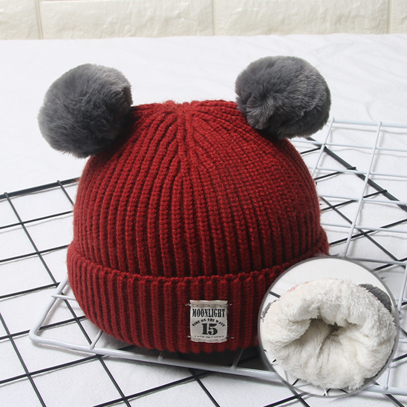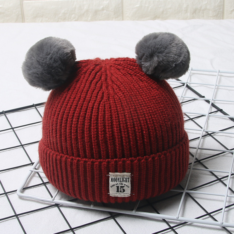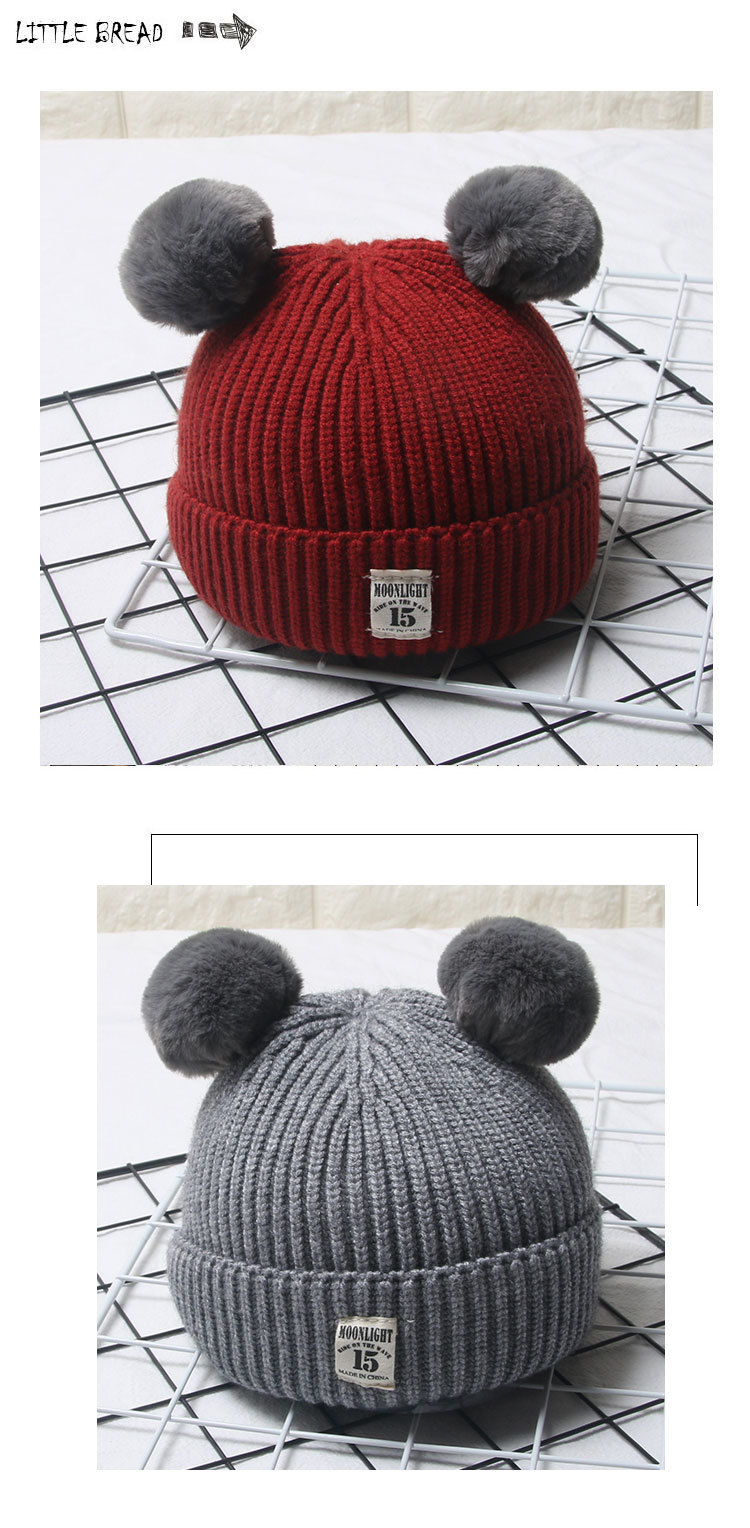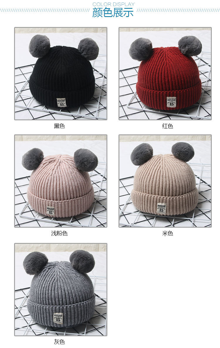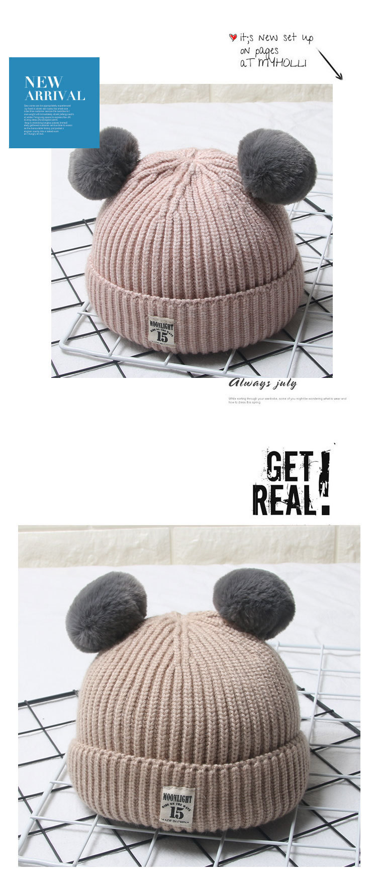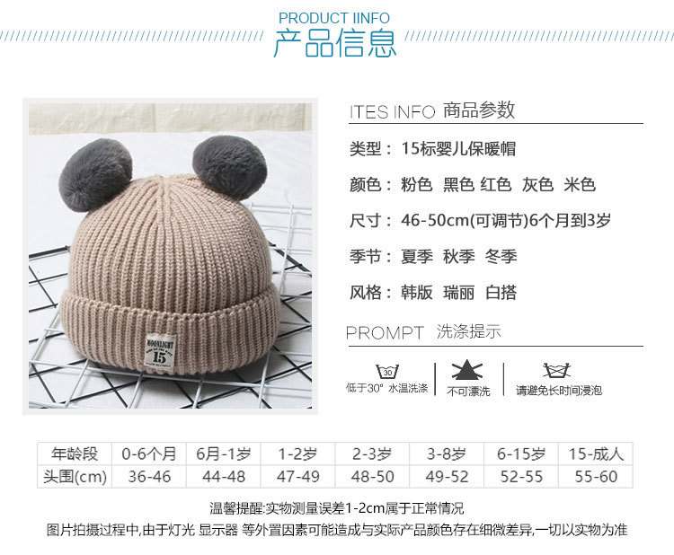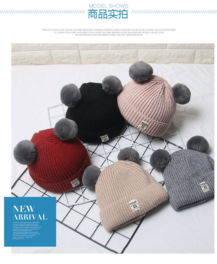 Tian Tian Dai 가을과 겨울 새로운 아기 니트 모자 더블 모피 볼 어린이 한국 따뜻한 15 표준 아기 모직 모자