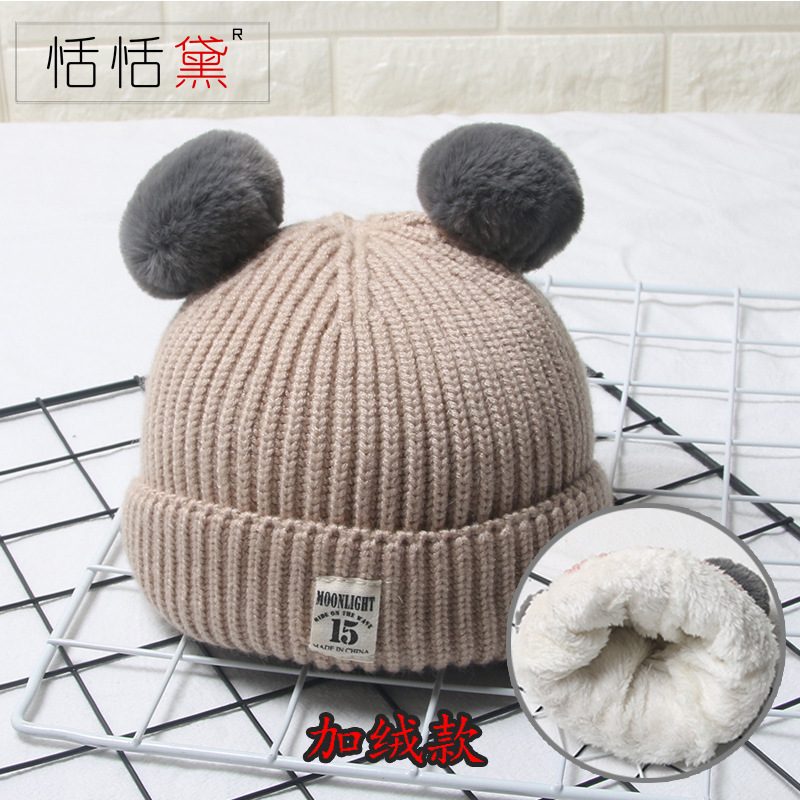Tian Tian Dai 가을과 겨울 새로운 아기 니트 모자 더블 모피 볼 어린이 한국 따뜻한 15 표준 아기 모직 모자스토어 가기