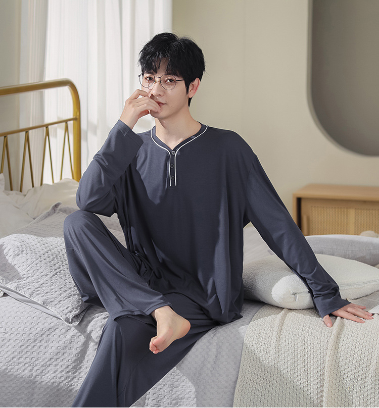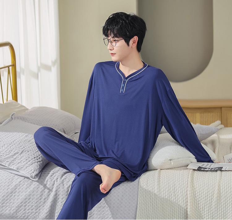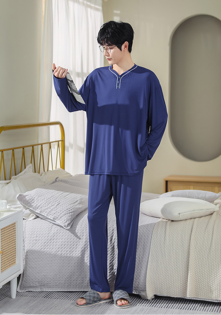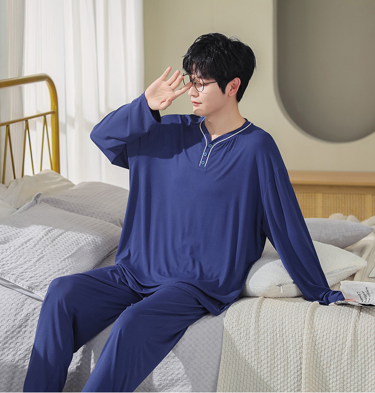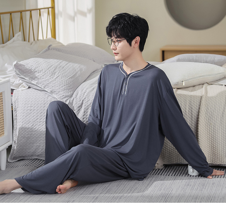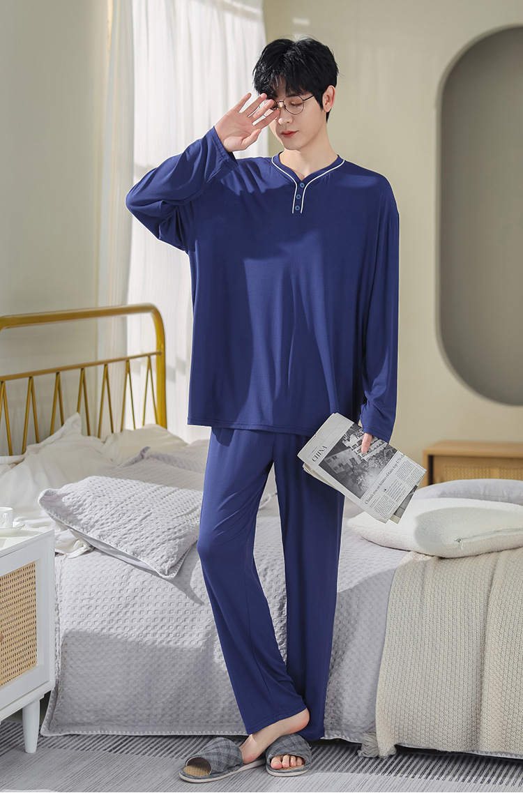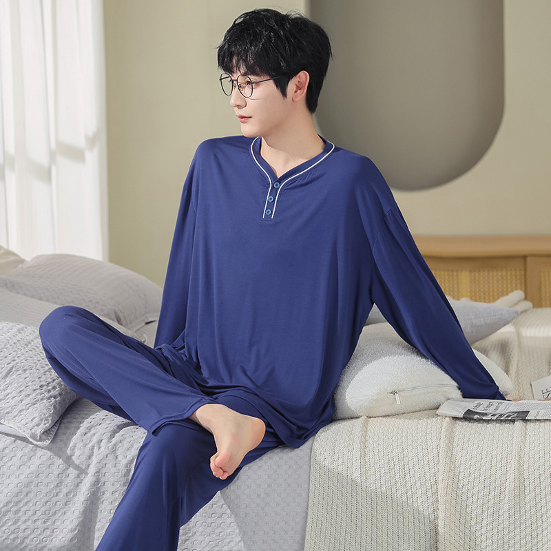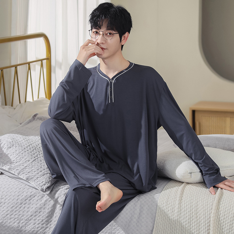 봄과 가을 플러스 사이즈 홈 의류 세트 남자의 얇은 모달 잠옷 긴 소매 가을 남자의 투피스 홈 의류스토어 가기