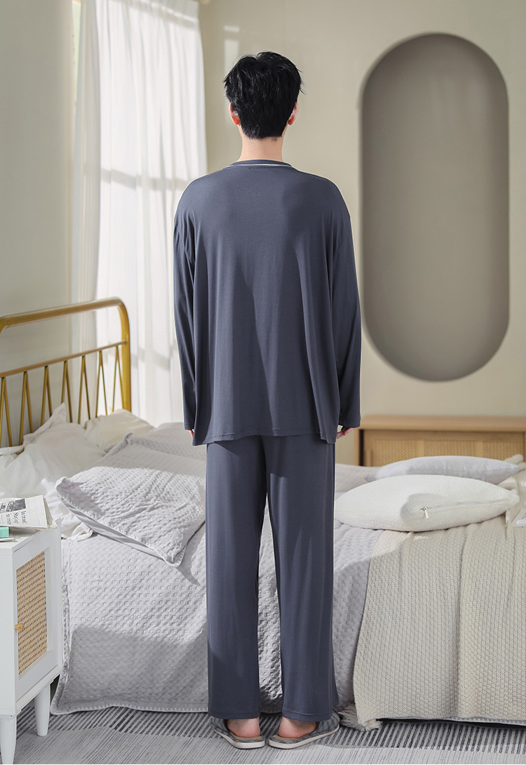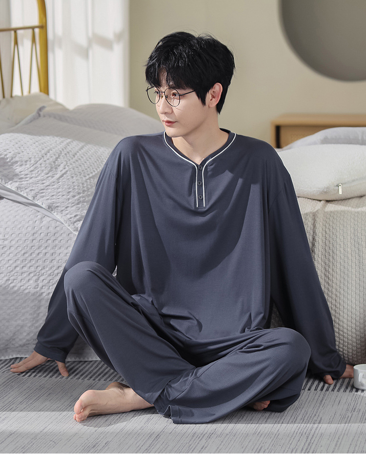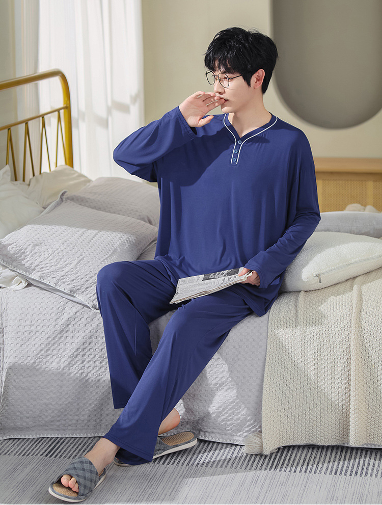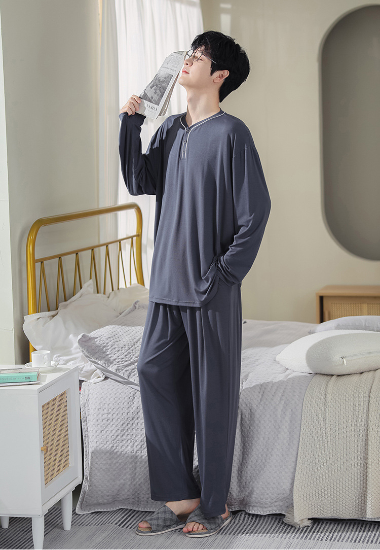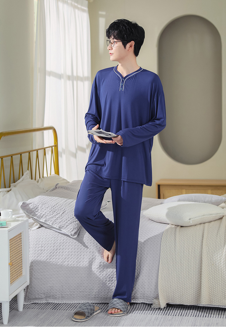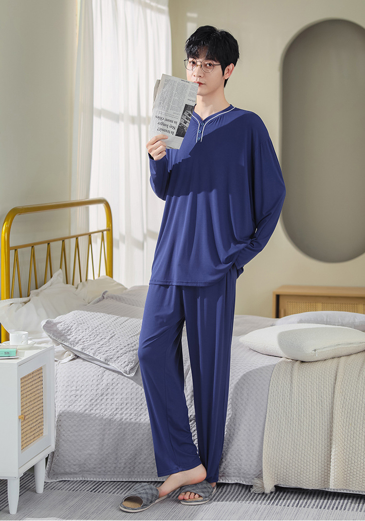 봄과 가을 플러스 사이즈 홈 의류 세트 남자의 얇은 모달 잠옷 긴 소매 가을 남자의 투피스 홈 의류스토어 가기
