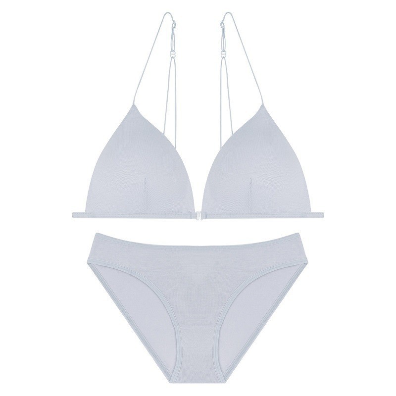 프랑스 스타일 섹시 속옷 여자의 전면 버클 삼각형 컵 아니 스틸 링 브래지어 얇은 면 얇은 어깨 스트랩 아름다움 다시 속옷 세트 브래지어
