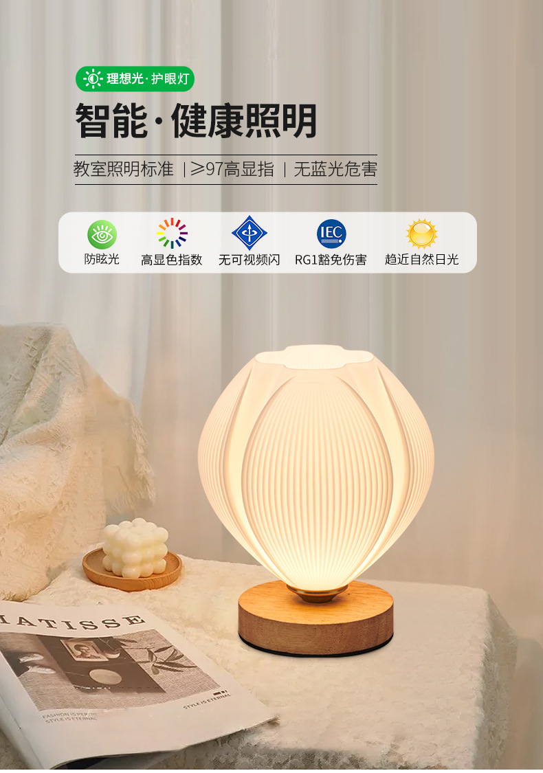 대관원 심플 테이블 램프 침대 옆 램프 고급스러운 분위기의 침실 낭만적인 분위기 조명 소형 야간등 전기식 수면등 485L