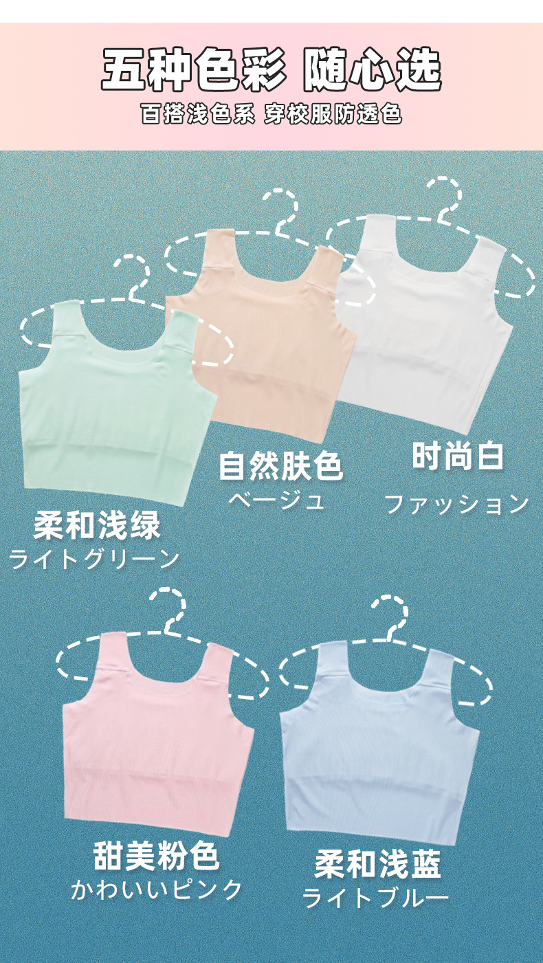 여아 속옷 개발 기간 초등학생 1 단계 여아 작은 조끼 착용 큰 어린이 튜브 탑 10 세 11