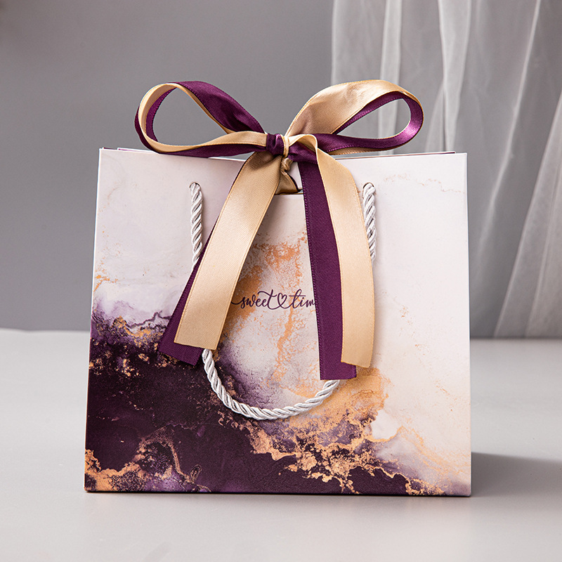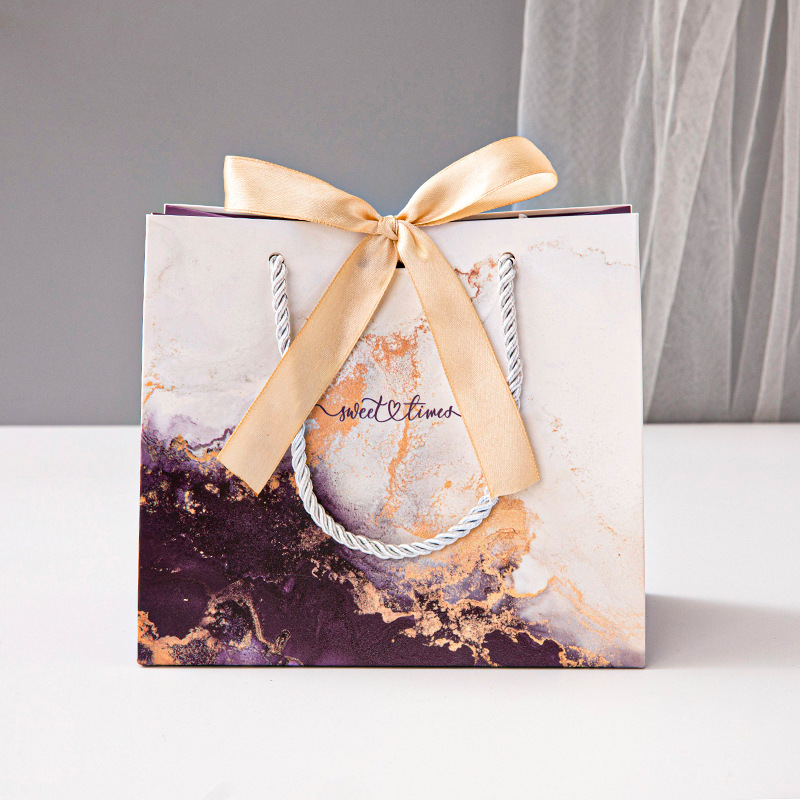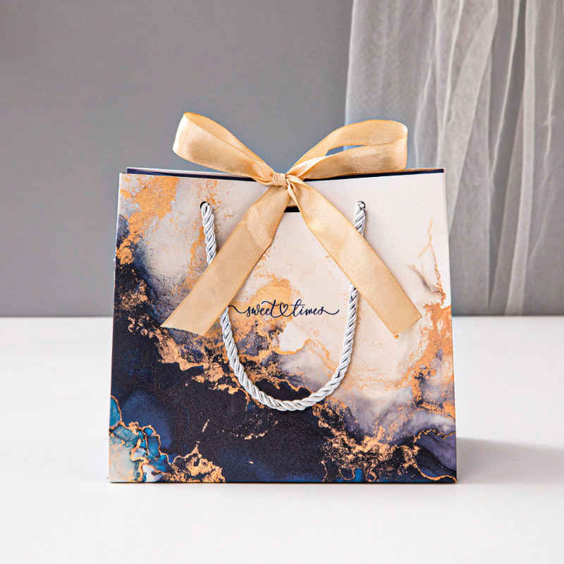 스팟 사파이어 블루 대리석 선물 가방 고급 리본 핸드백 국경 컬러 인쇄 포장 가방 대외 무역 종이 가방
