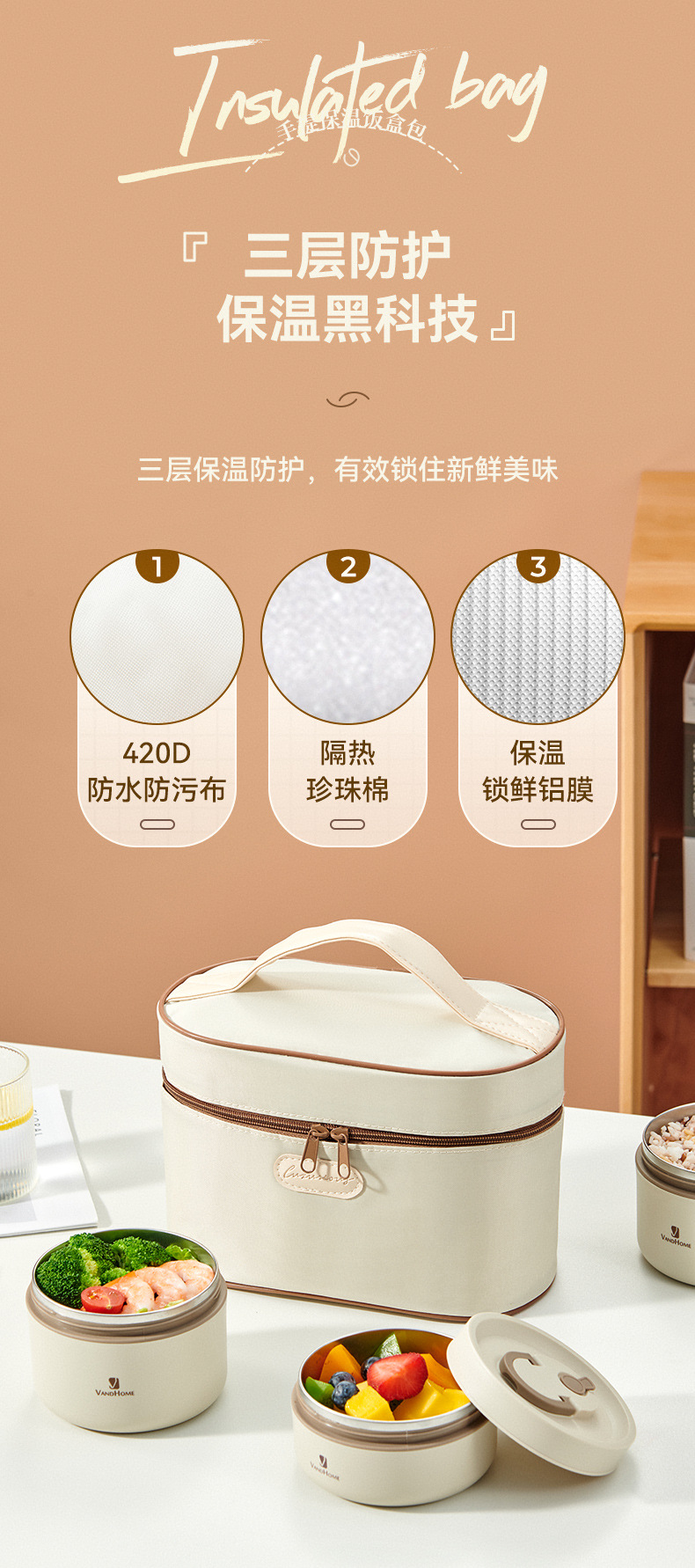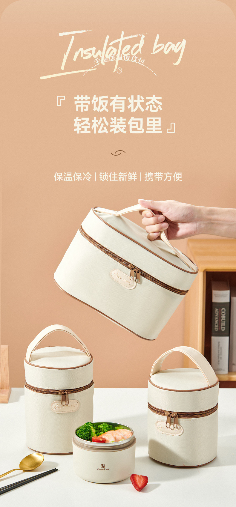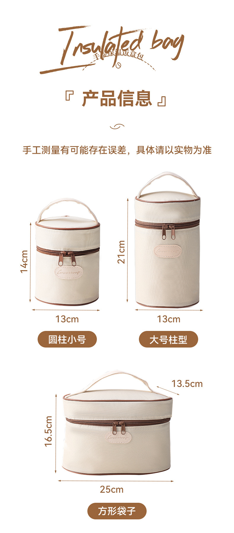 쌀 다크 브라운 수프 그릇 단열 가방 휴대용 도시락 가방 휴대용 방수 방오 도시락 가방 차가운 아이스 백